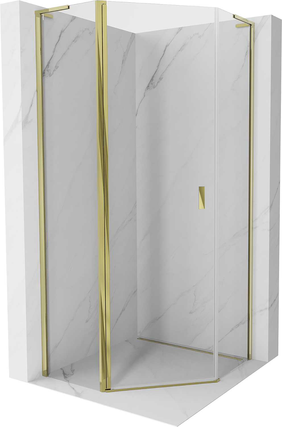 Mexen Mist L penkiakampė dušo kabina su atveriamomis durimis 100 x 100 cm, permatoma, auksinė - 8A8L-100-100-50-00