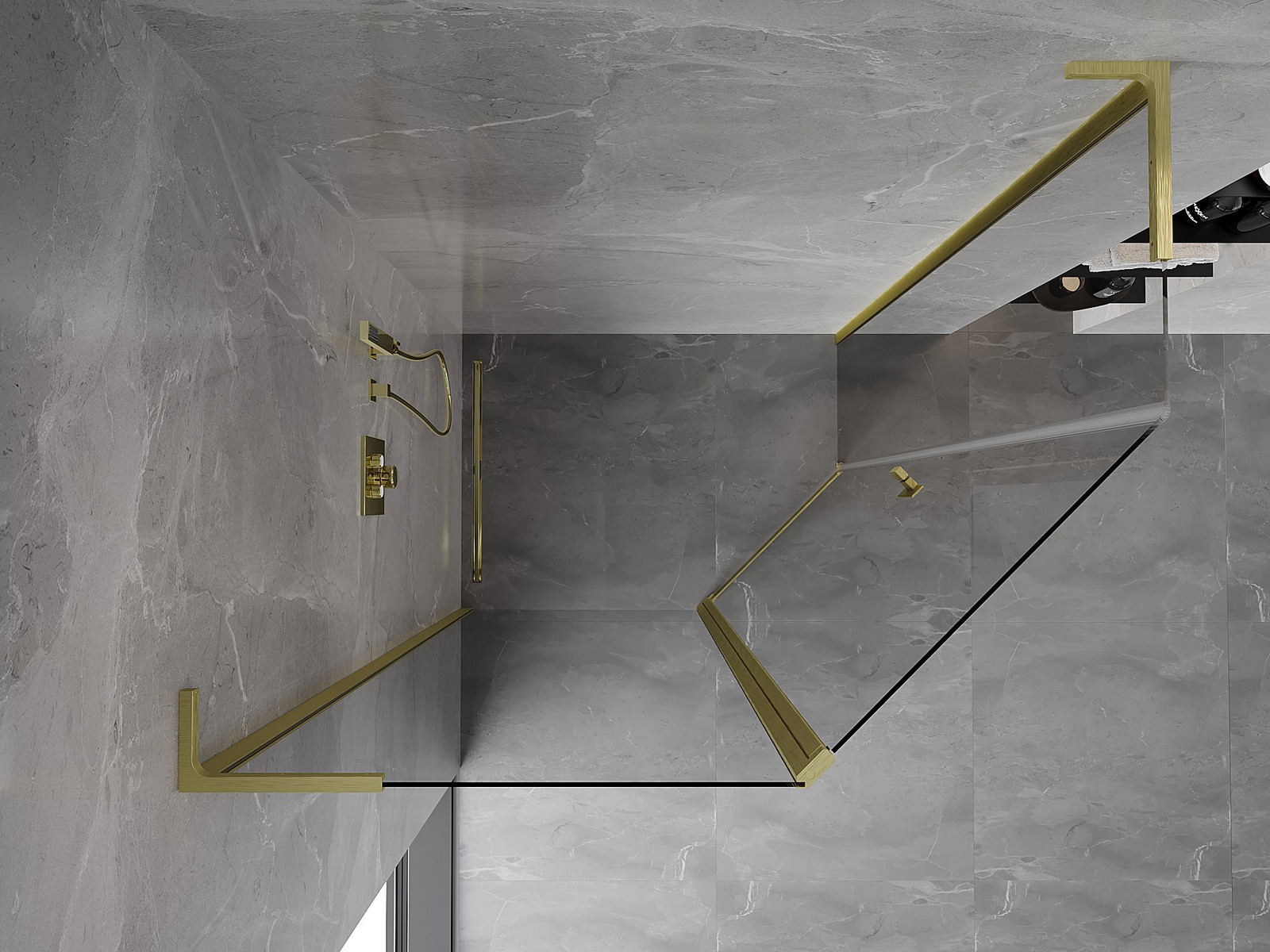 Mexen Mist L Asimetriška penkiakampė dušo kabina atveriamais durimis 100x80 cm, skaidrus, aukso šepetėlis