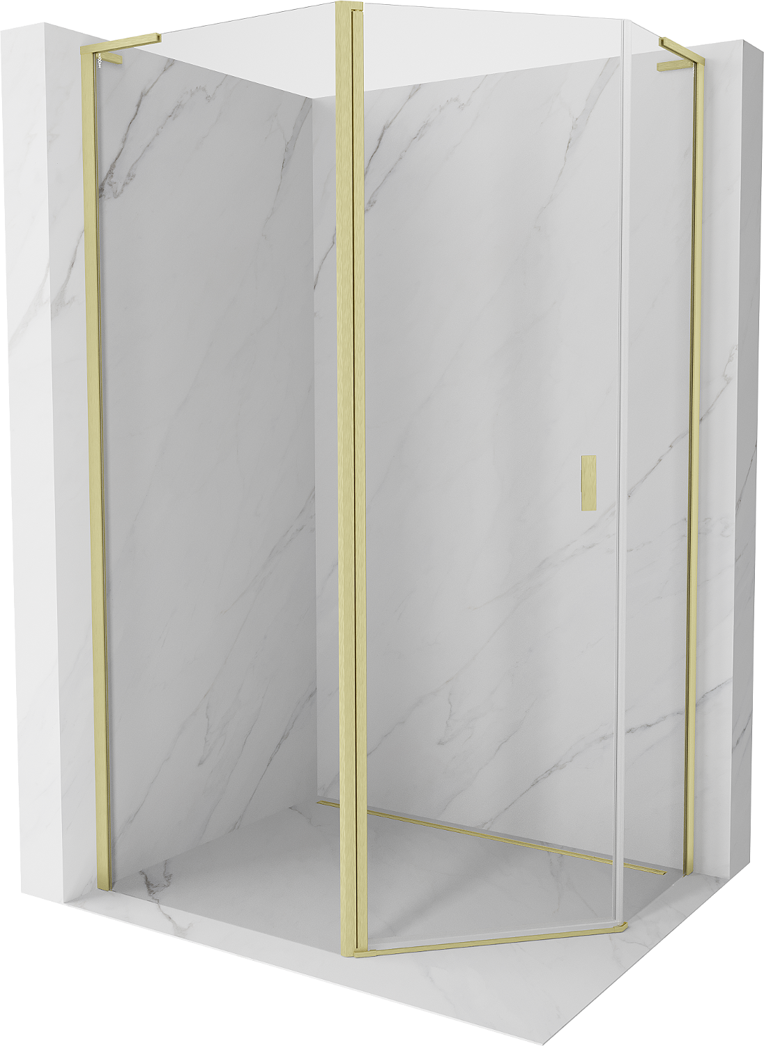 Mexen Mist L penkiakampė asimetrinė dušo kabina su atveriamomis durimis 100x90 cm, skaidri, šlifuota auksinė
