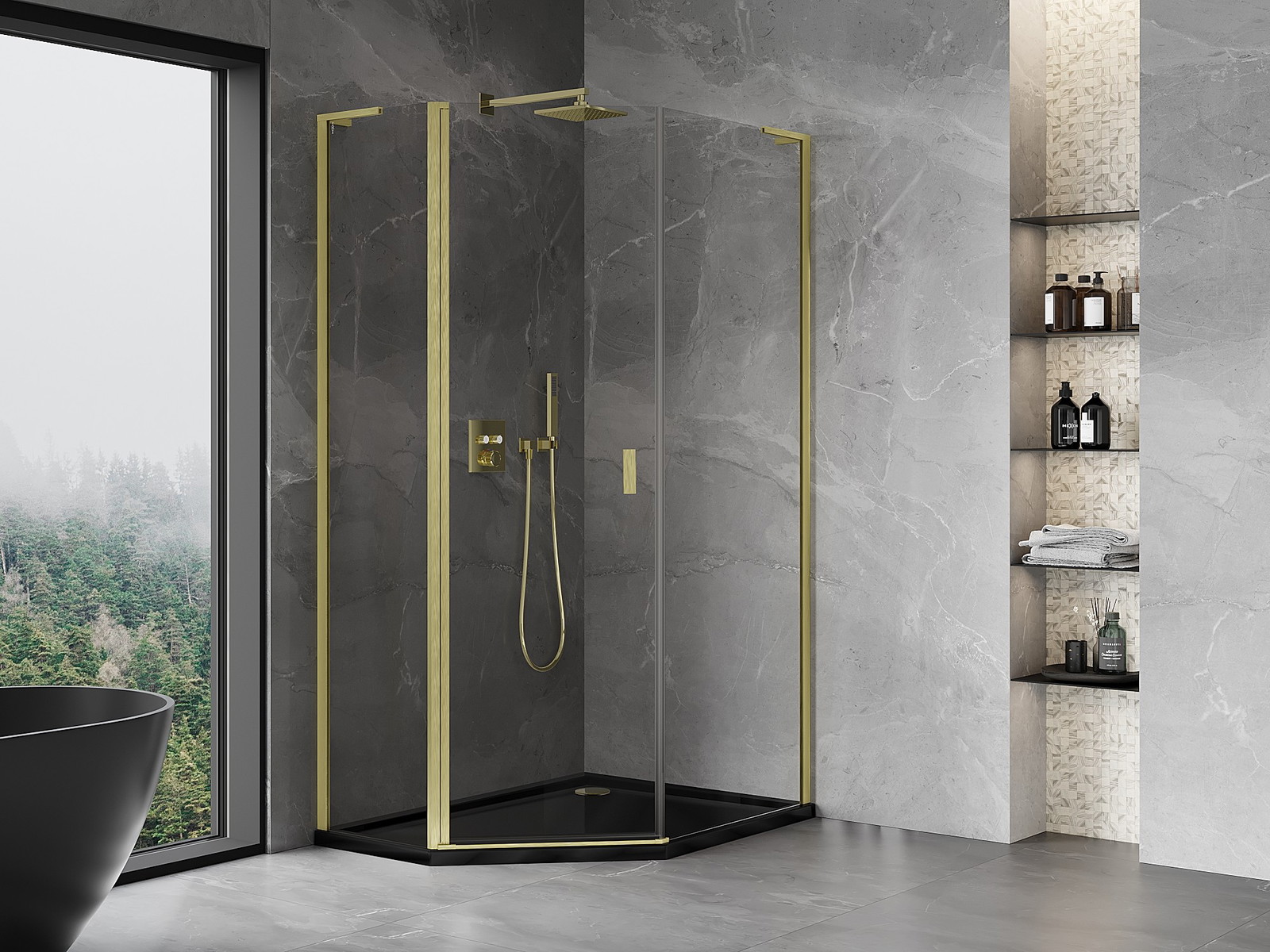 Mexen Mist L asimetriška penkiakampė atveriama dušo kabina 80x100 cm, skaidri, aukso šepetėlis - 8A8L-080-100-55-00