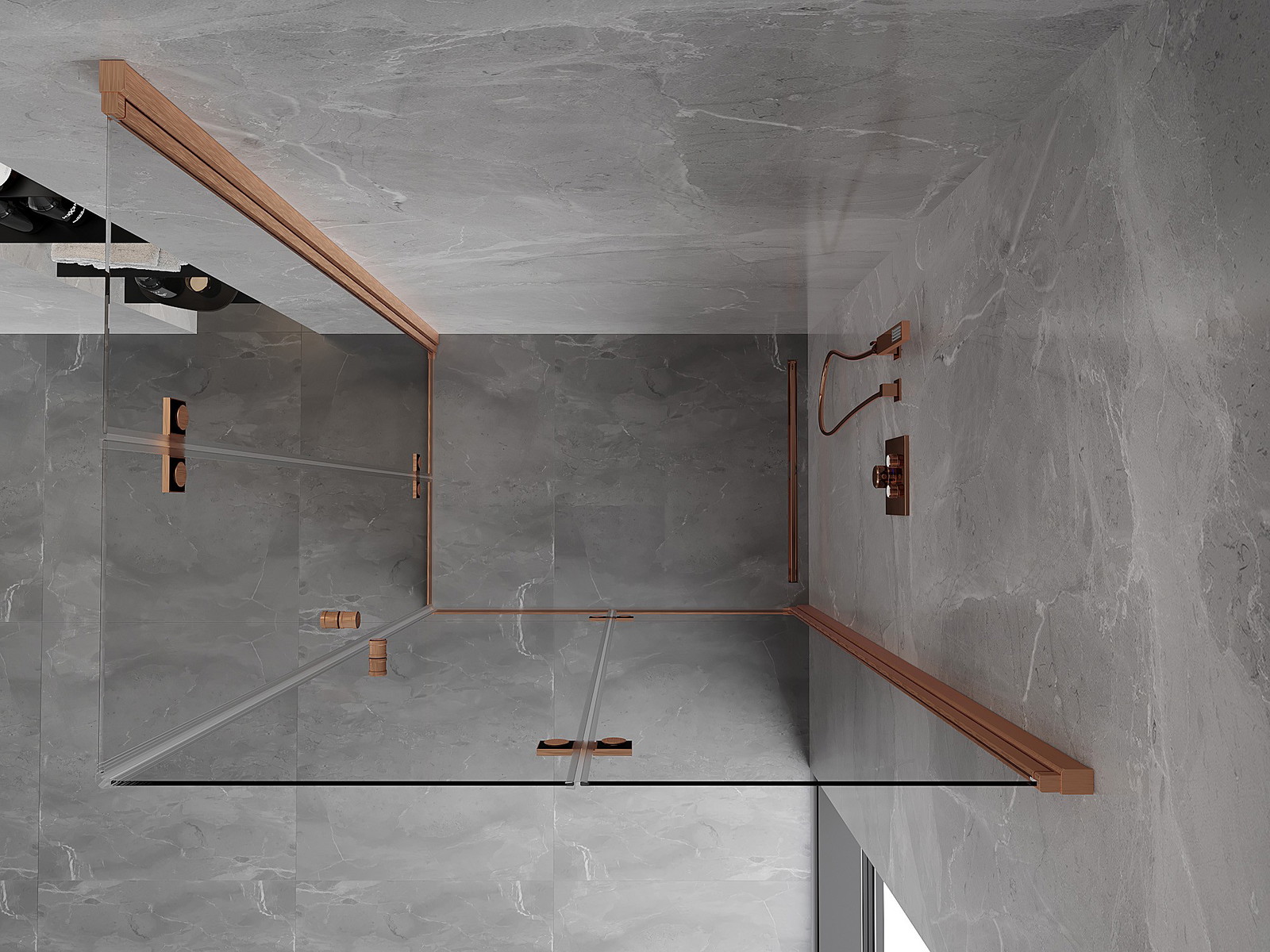 Mexen Mist-F Duo dešinės pusės sulankstoma dušo kabina 95 x 100 cm, skaidri, matinė vario spalva - 8A6-095L-100P-65-00