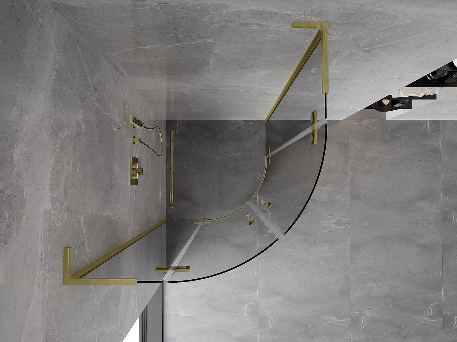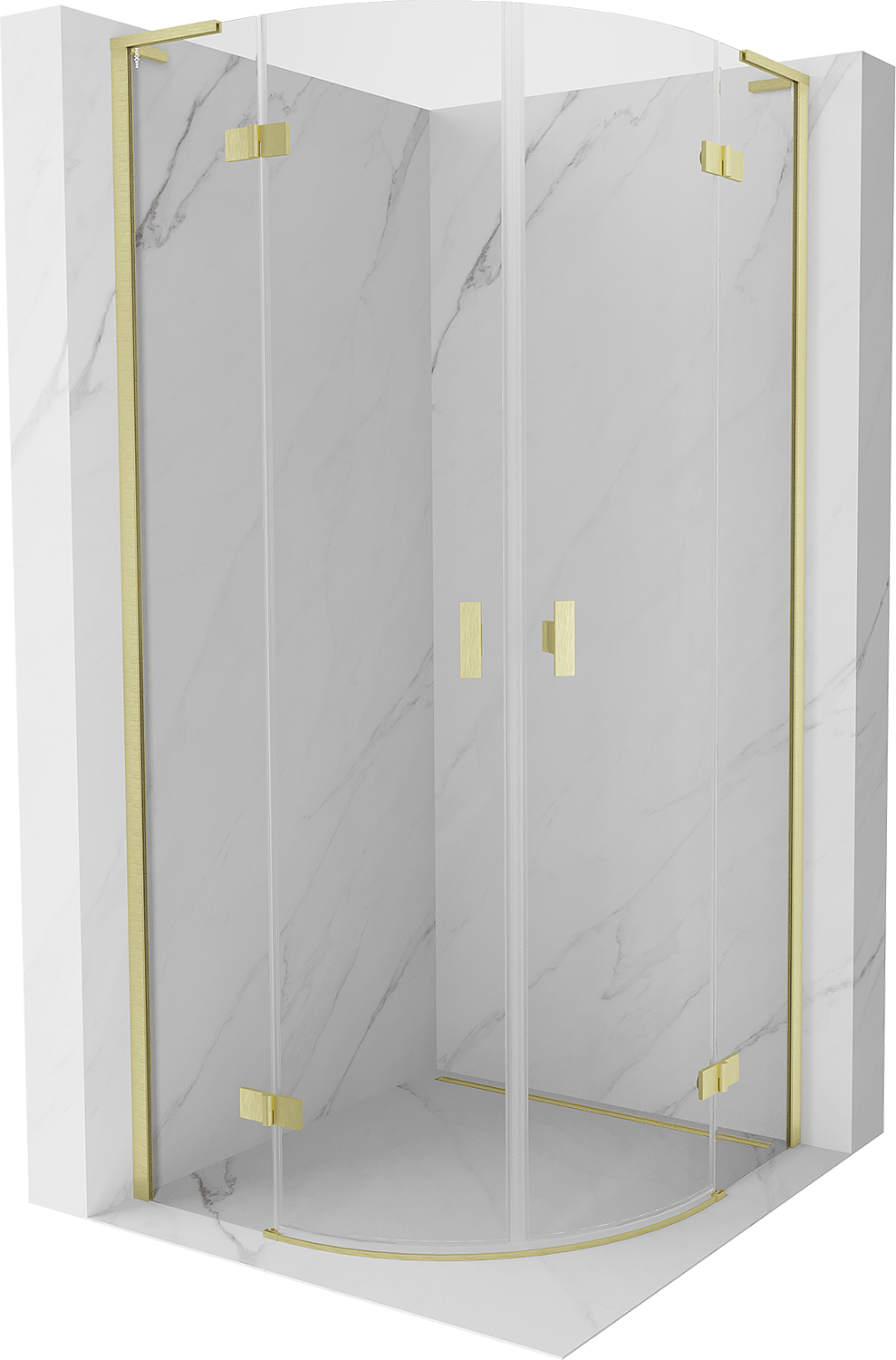 Mexen Mist L pusapvalė dušo kabina, atveriama, 90 x 90 cm, skaidri, auksinė šepečiuota - 8A33L-090-090-55-00