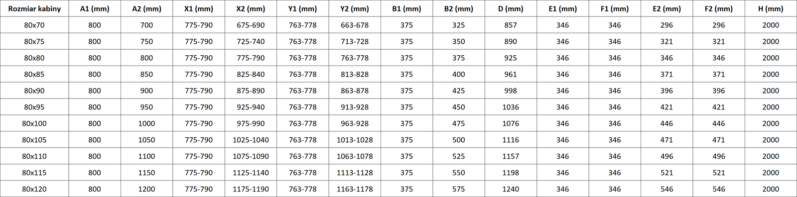 Dušo kabinos, durys ir sienelės yra standartiškai pritaikytos montuoti ant nustatytų matmenų dušo padėklų. Būtent šie matmenys nurodomi gaminio pavadinime arba aprašyme. Tačiau atkreipkite dėmesį, kad faktiniai elementų matmenys gali šiek tiek skirtis nuo vardinių verčių. Planuojant montuoti tiesiai ant grindų, rekomenduojama atidžiai patikrinti išorinius matmenis ir elementų išdėstymą pagal techninį brėžinį.