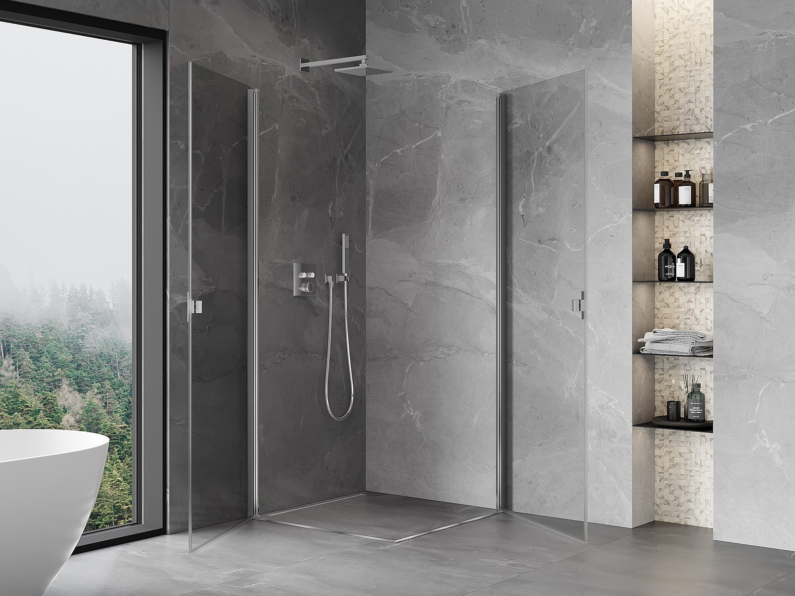 Mexen Mist-B Dviguba keleto durų dušo kabina 95 x 95 cm, skaidri, chromuota - 8A2-095-095-01-00