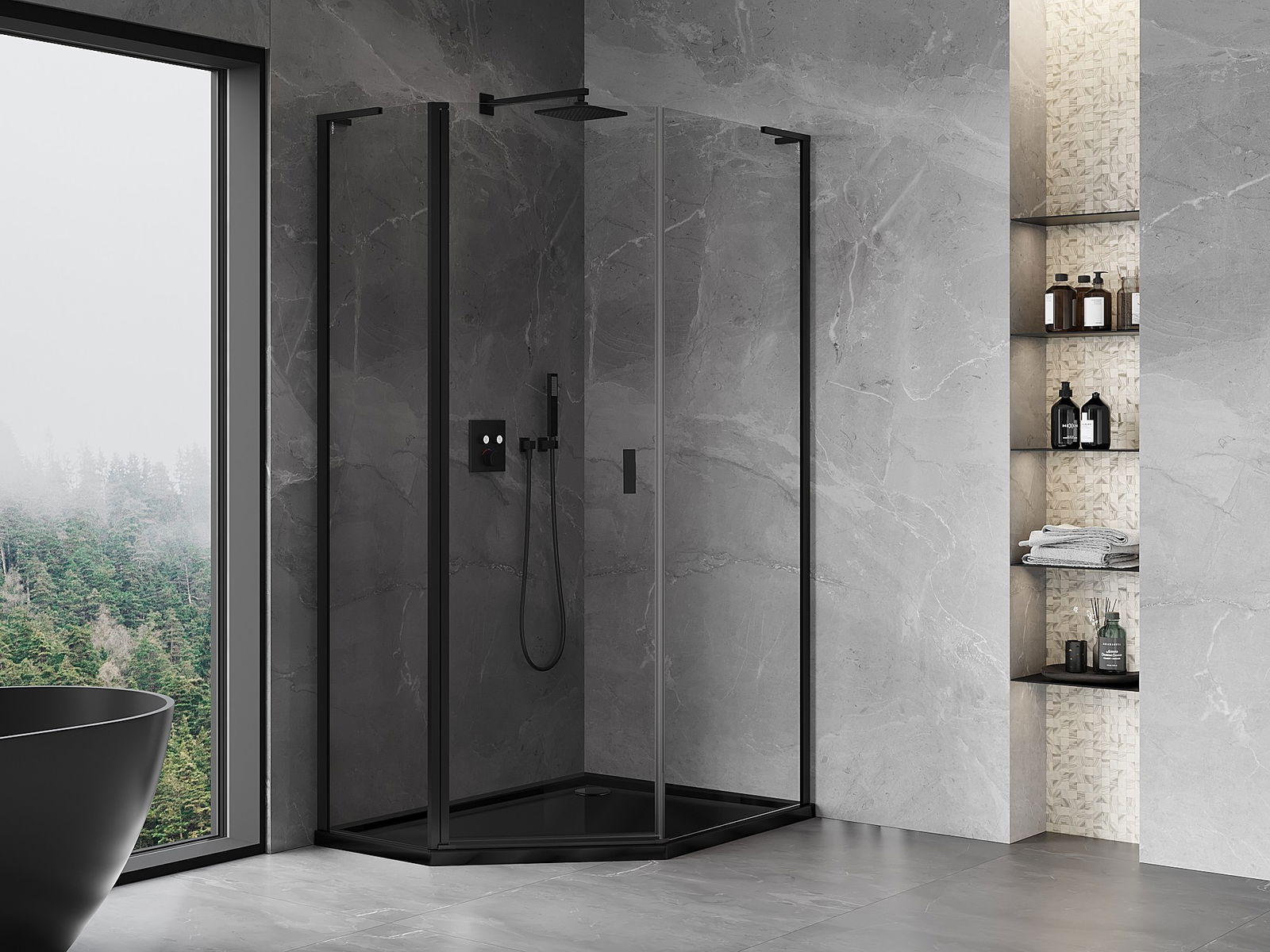 Mexen Mist L asimetrinė penkiakampė dušo kabina su atveriamomis durimis 90 x 100 cm, skaidri, juoda - 8A8L-090-100-70-00