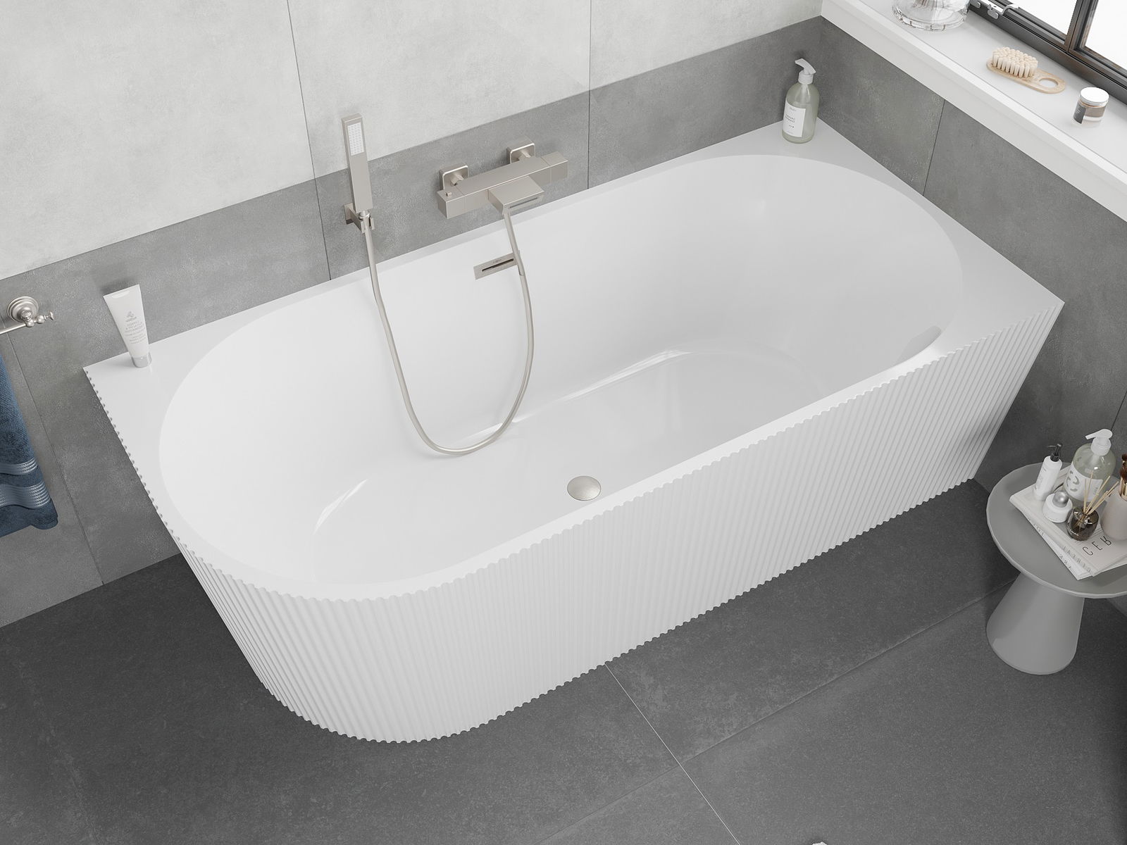 Mexen Silo laisvai stovinti kampe dešinė rifliuota vonia 150 x 75 cm, balta, šlifuotas nikelio perpildymas - 52891507500P-97