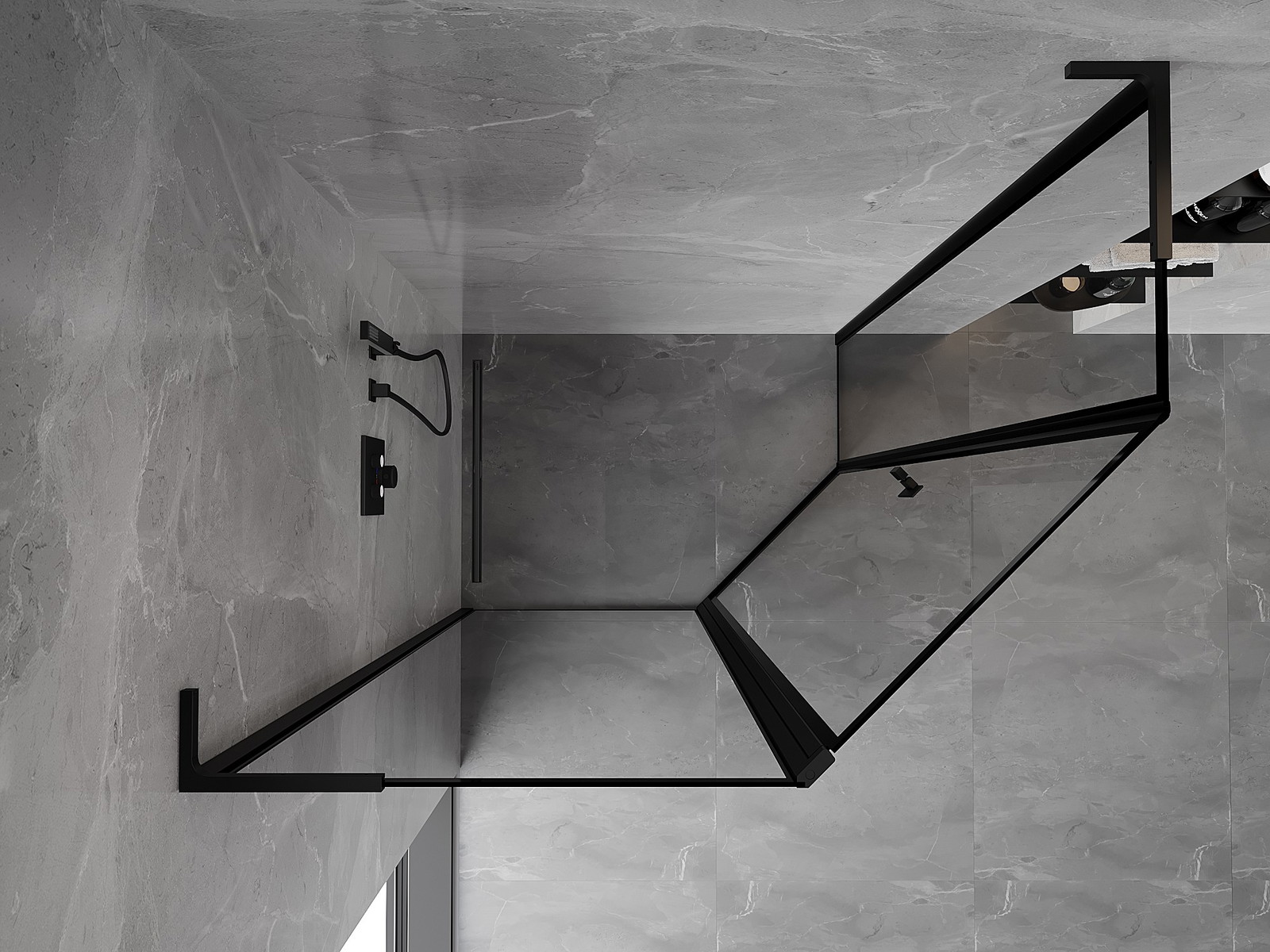 Mexen Mist L penkiakampė asimetrinė kairės pusės dušo kabina 100 x 80 cm, juodas rėmas, juoda - 8A8L-100-080-70-70-L