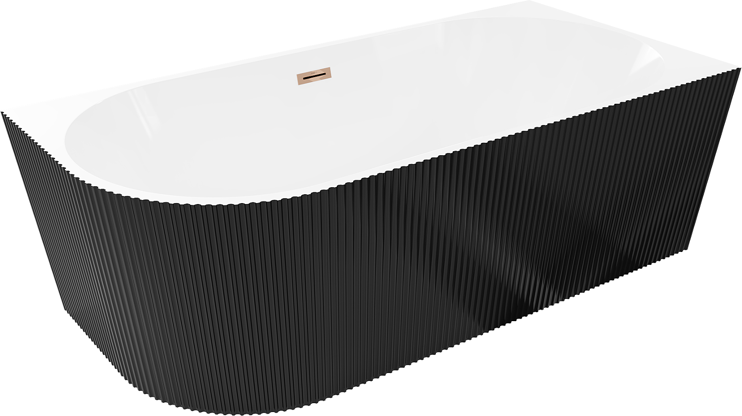 Mexen Silo laisvai stovinti kampinė vonia su dešiniuoju rifliu 150 x 75 cm, balta/juoda, persilieja rožinis auksas