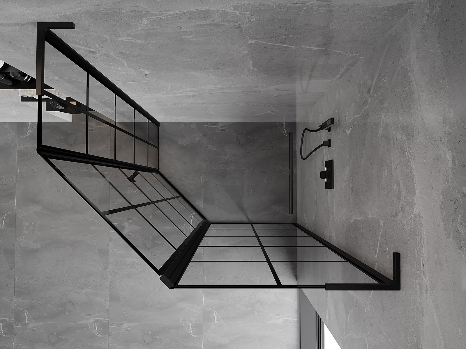 Mexen Mist L asimetriška dešinioji dušo kabina, 90 x 80 cm, juodos grotelės, juoda - 8A8L-090-080-70-77-P