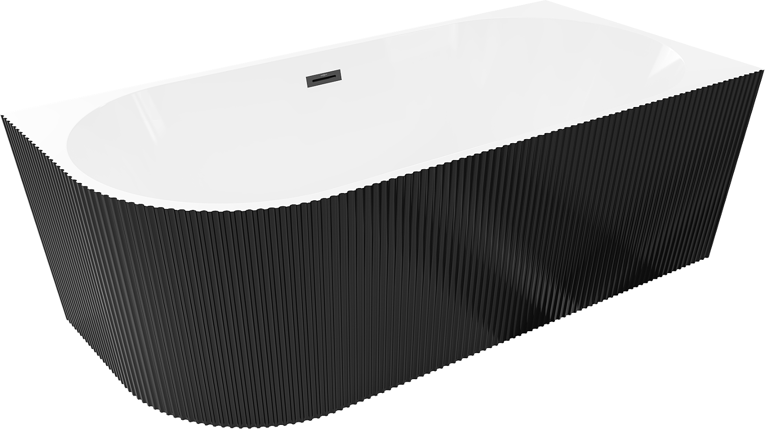 Mexen Silo laisvai pastatoma kampinė dešinė nupjauta vonia 150 x 75 cm, balta/juoda, perpylimas juodas - 52891507575P-70