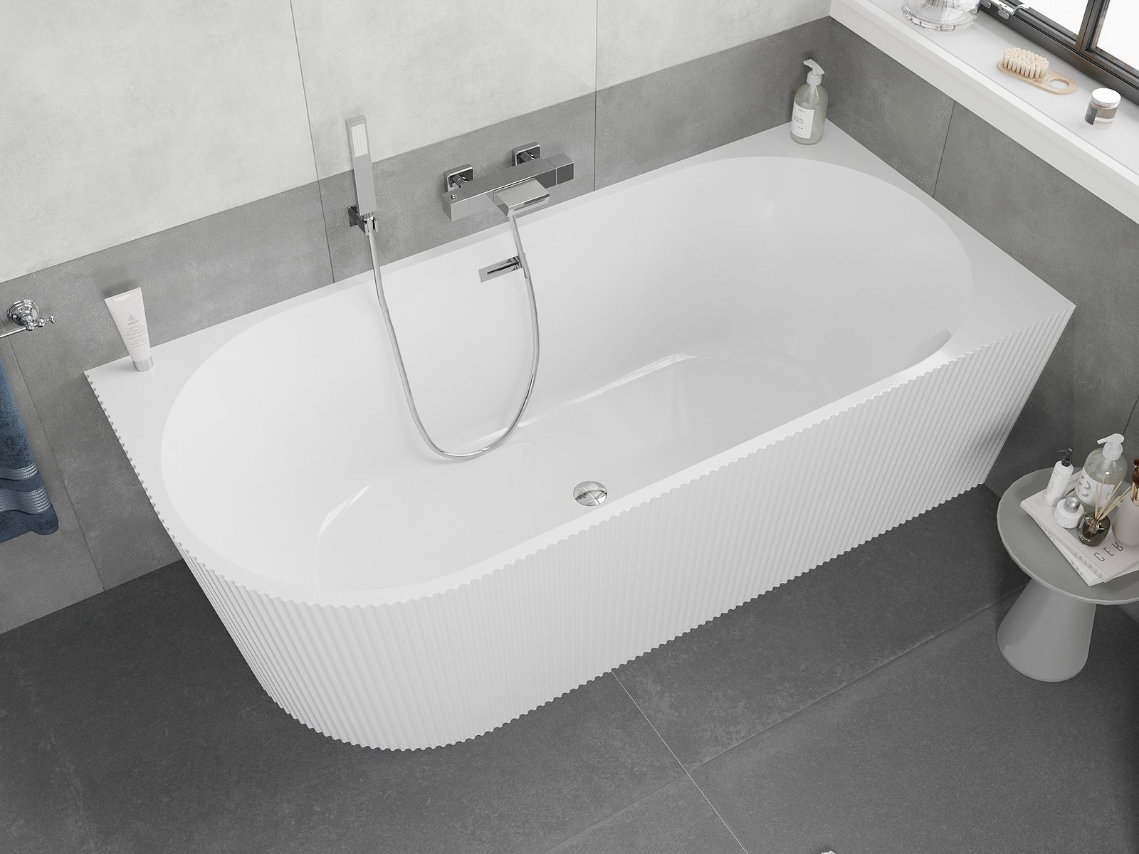 Mexen Silo laisvai pastatoma kampinė dešinė rifliuota vonia 170 x 80 cm, balta, chromo perteklius - 52891708000P-01