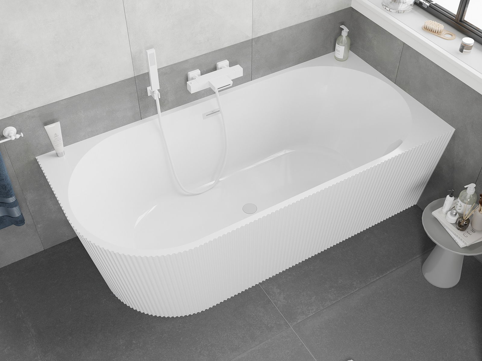 Mexen Silo laisvai pastatoma kampinė vonia dešinė rifliuota 170 x 80 cm, balta, baltas perpylimas - 52891708000P-20