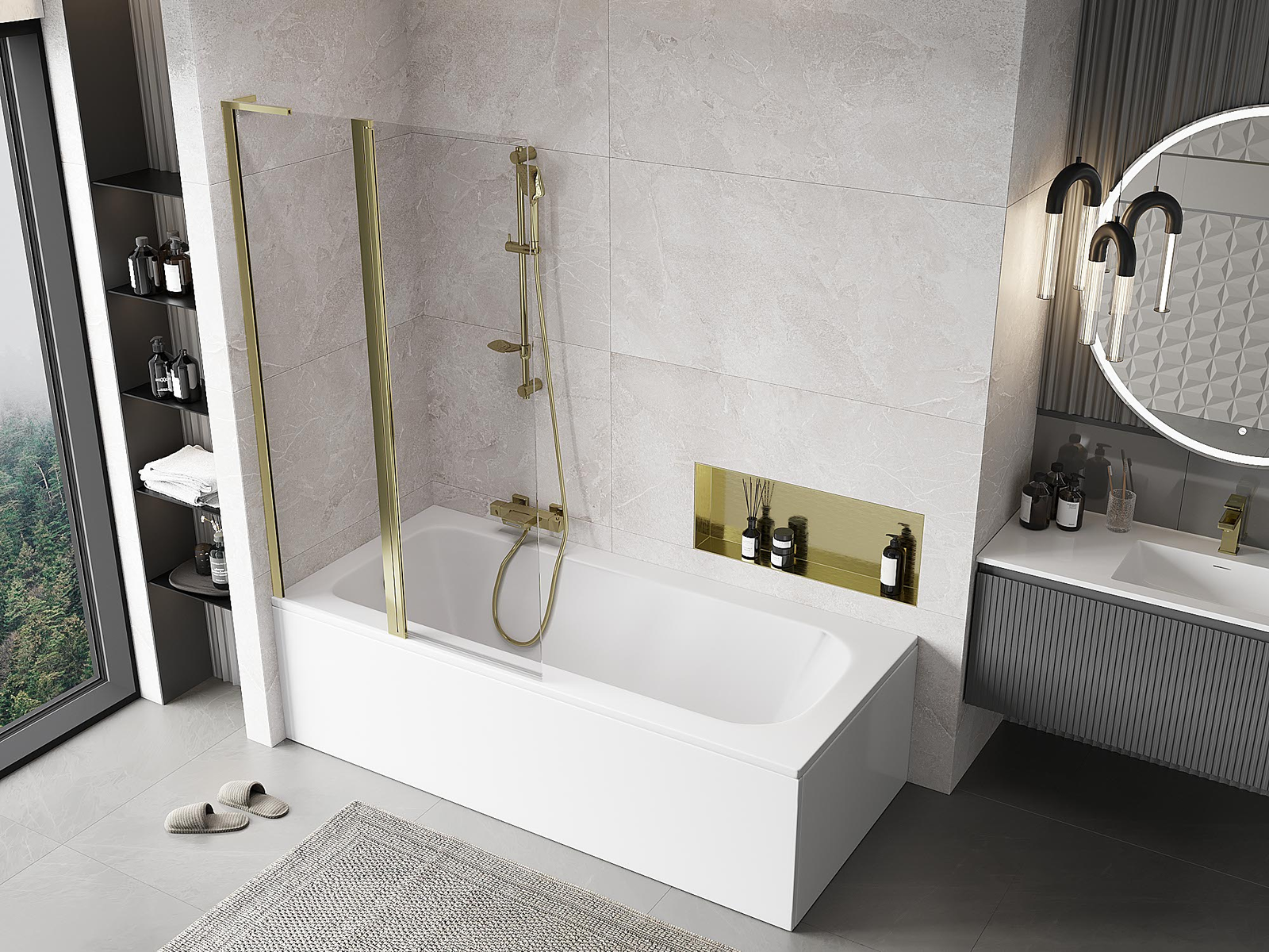 Efektyvi apsauga nuo vandens išsiliejimo maudymosi metu. Sienelė turi tarpines, kurios idealiai priglunda prie stiklo paviršiaus ir vonios krašto. Funkcionalus sprendimas, užtikrinantis saugumą ir lengvą švaros palaikymą.