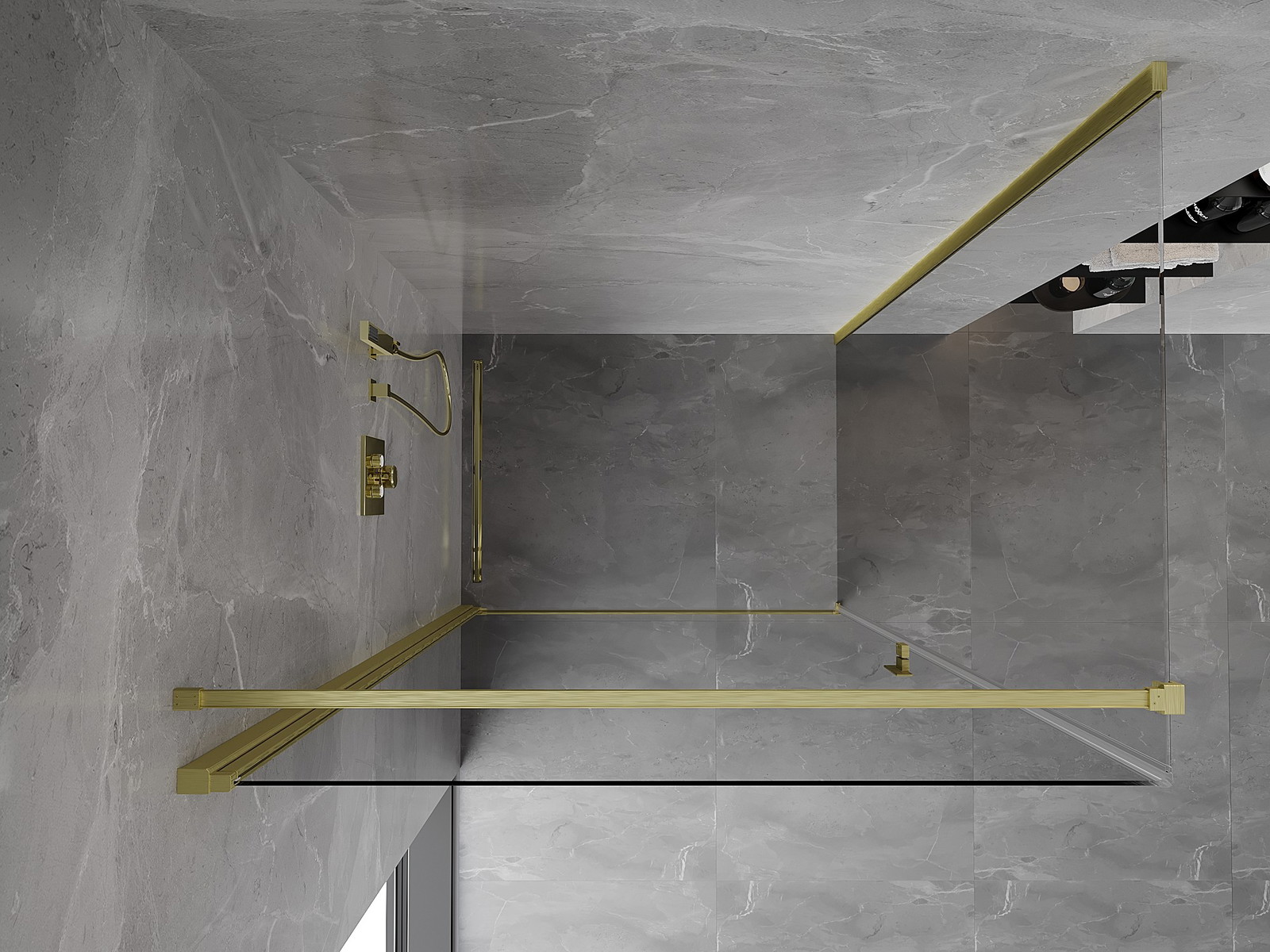 Mexen Mist-B pakabinės dušo durys 85 x 70 cm, skaidrios, šlifuotas auksas - 8A2T-085-070-55-00