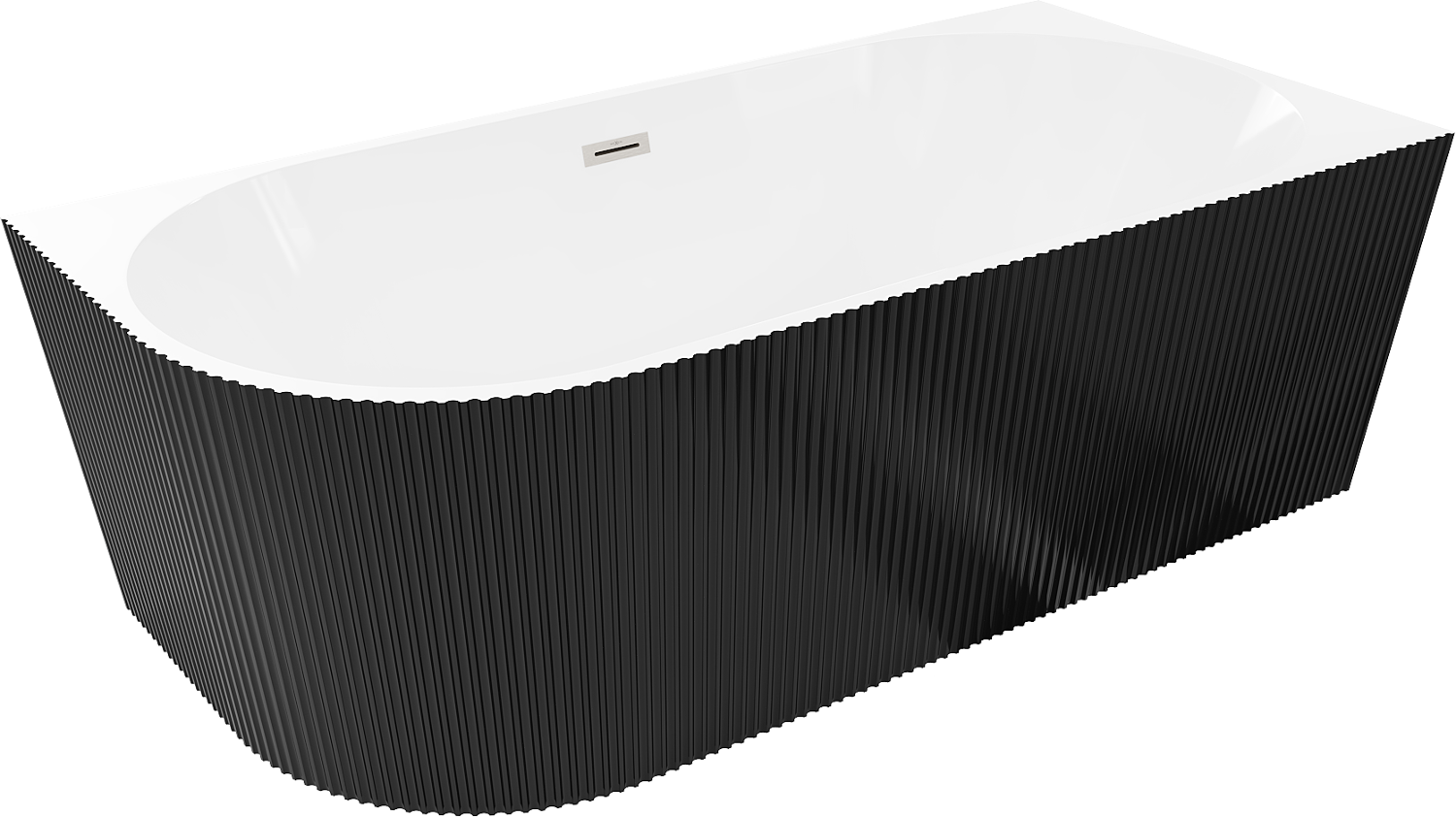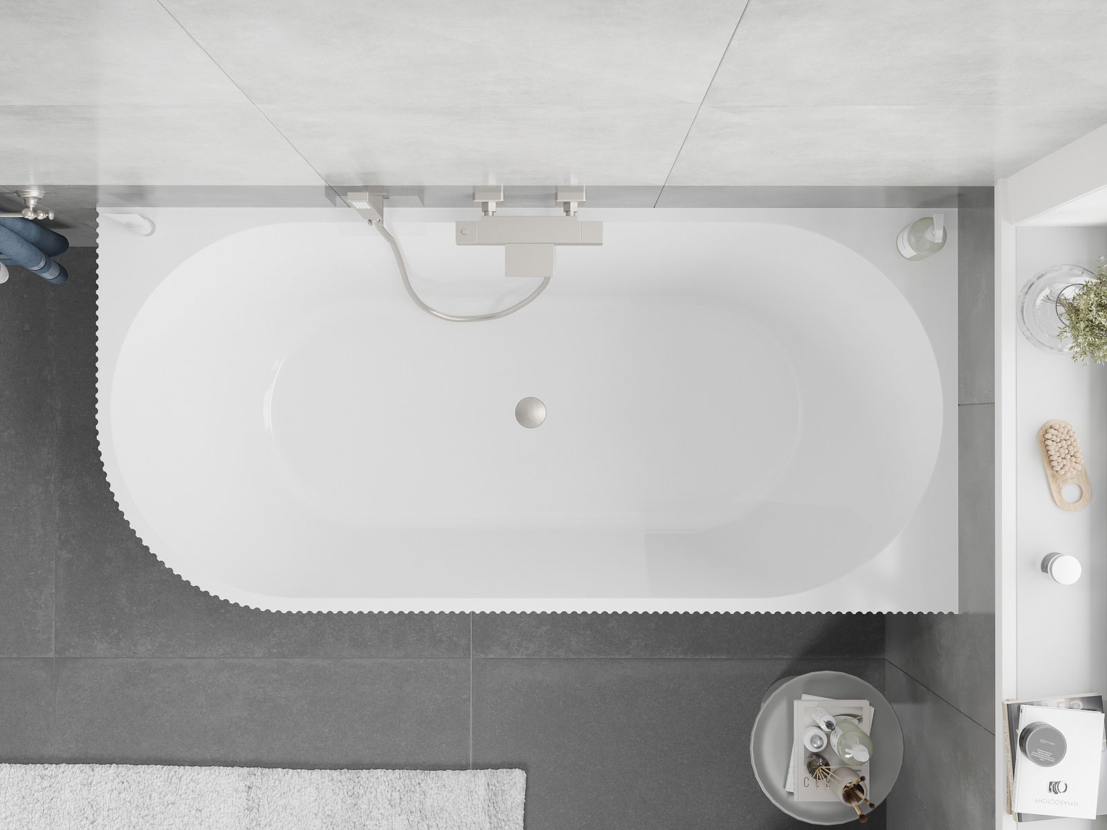 Mexen Silo laisvai stovinti kampinė dešinė vonia su grioveliais 170 x 80 cm, balta/juoda, šukuotas nikelis - 52891708075P-97