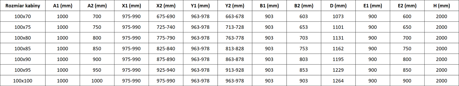 Dušo kabinos, durys ir sienelės yra standartiškai pritaikytos montuoti ant nustatytų matmenų dušo padėklų. Būtent šie matmenys nurodomi gaminio pavadinime arba aprašyme. Tačiau atkreipkite dėmesį, kad faktiniai elementų matmenys gali šiek tiek skirtis nuo vardinių verčių. Planuojant montuoti tiesiai ant grindų, rekomenduojama atidžiai patikrinti išorinius matmenis ir elementų išdėstymą pagal techninį brėžinį.