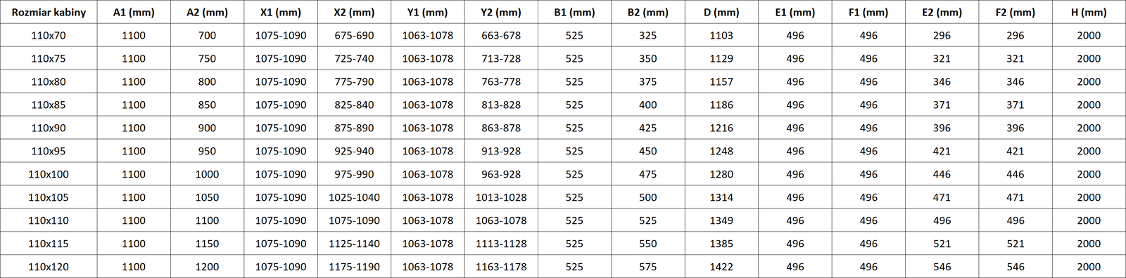 Dušo kabinos, durys ir sienelės yra standartiškai pritaikytos montuoti ant nustatytų matmenų dušo padėklų. Būtent šie matmenys nurodomi gaminio pavadinime arba aprašyme. Tačiau atkreipkite dėmesį, kad faktiniai elementų matmenys gali šiek tiek skirtis nuo vardinių verčių. Planuojant montuoti tiesiai ant grindų, rekomenduojama atidžiai patikrinti išorinius matmenis ir elementų išdėstymą pagal techninį brėžinį.