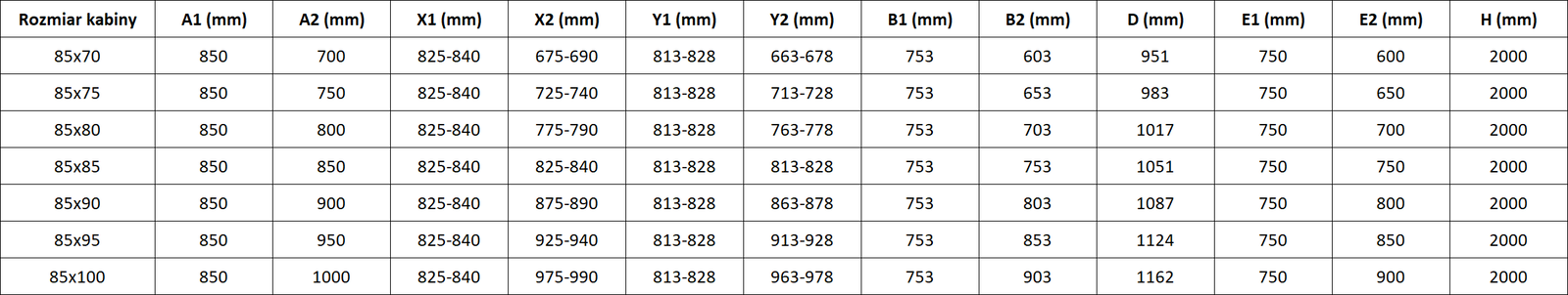 Dušo kabinos, durys ir sienelės yra standartiškai pritaikytos montuoti ant nustatytų matmenų dušo padėklų. Būtent šie matmenys nurodomi gaminio pavadinime arba aprašyme. Tačiau atkreipkite dėmesį, kad faktiniai elementų matmenys gali šiek tiek skirtis nuo vardinių verčių. Planuojant montuoti tiesiai ant grindų, rekomenduojama atidžiai patikrinti išorinius matmenis ir elementų išdėstymą pagal techninį brėžinį.