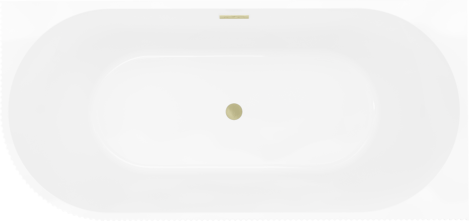 Mexen Silo laisvai pastatoma kampinė dešinė rifliuota vonia 150 x 75 cm, balta/pilka, perpildymas auksinis šlifuotas