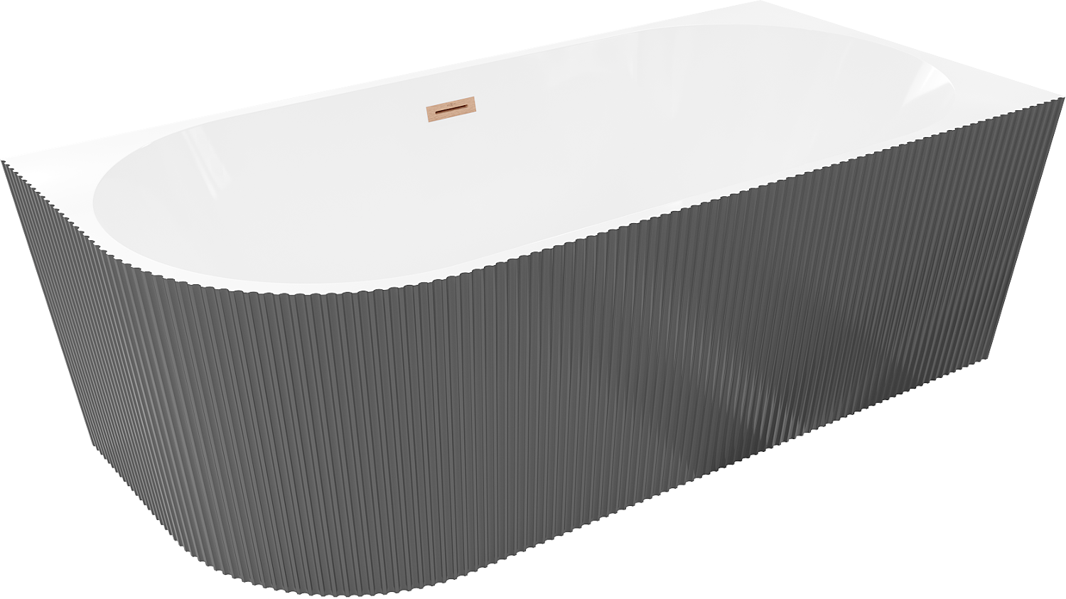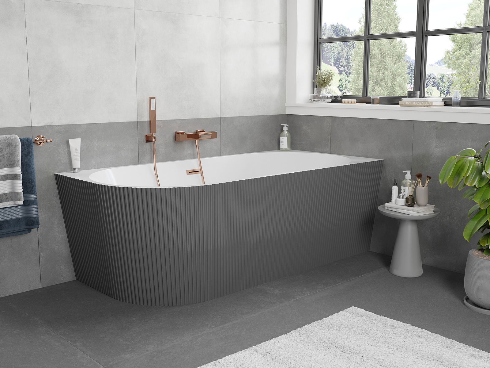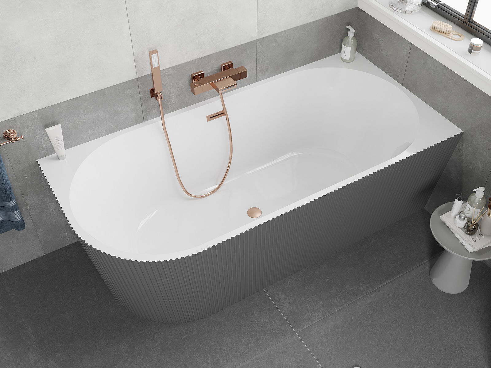 Mexen Silo laisvai pastatoma vonia, kampinė dešinė, rifliuota 150 x 75 cm, balta/pilka, šepečiu valyta vario perpylimas