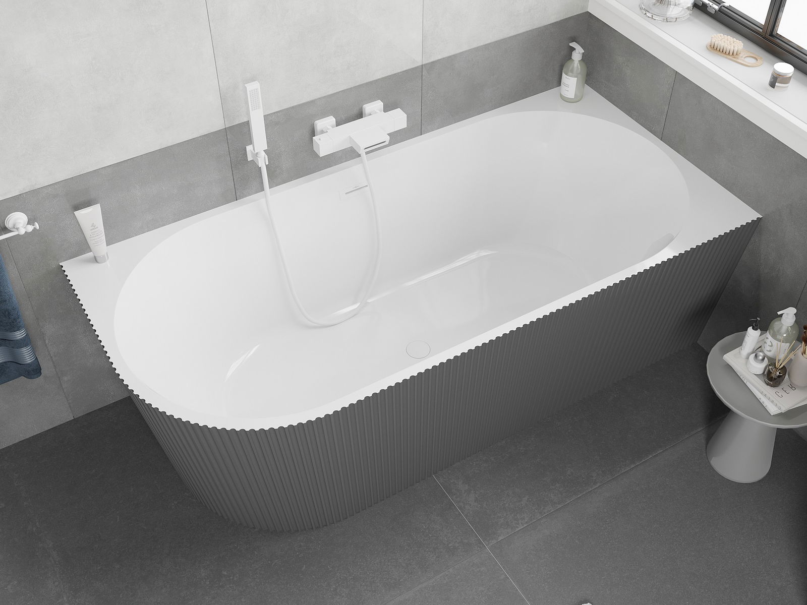 Mexen Silo laisvai pastatoma kampinė dešinė rifliuota vonia 170 x 80 cm, balta/pilka, baltas išbėgimas - 52891708062P-20