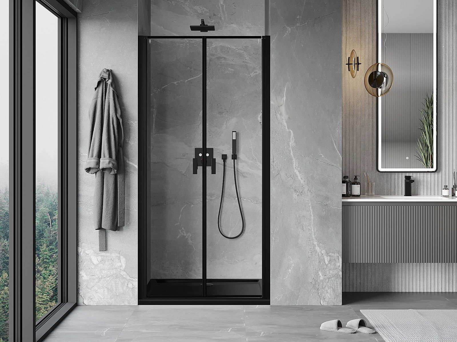 Mexen Mist atidaromos dušo durys 85 cm, juodas rėmas, juodos - 8A7-085-000-70-70