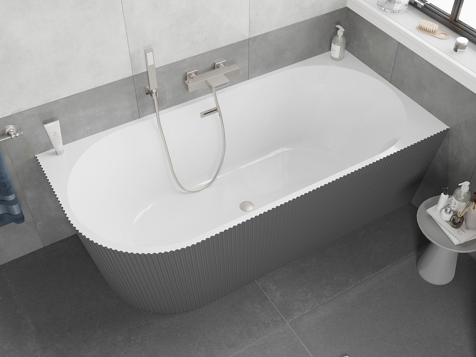 Mexen Silo laisvai stovinti kampinė vonia, rifliuota, dešinė, 170 x 80 cm, balta/pilka, šlifuotas nikelis - 52891708062P-97