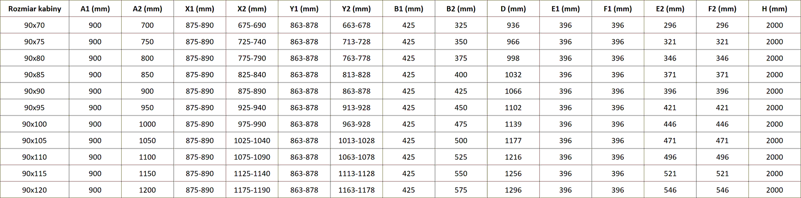 Dydis: 90x90 cm (kairiosios durys 90 cm, dešiniosios durys 90 cm)