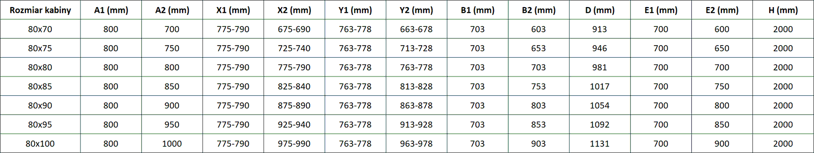 Dydis: 80x80 cm (kairiosios durys 80 cm, dešiniosios durys 80 cm)