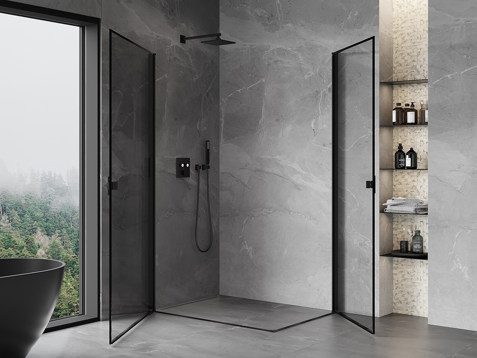 Mexen Rio kvadratinė dušo kabina 90 x 90 cm, skaidri, juoda - 860-090-090-70-00