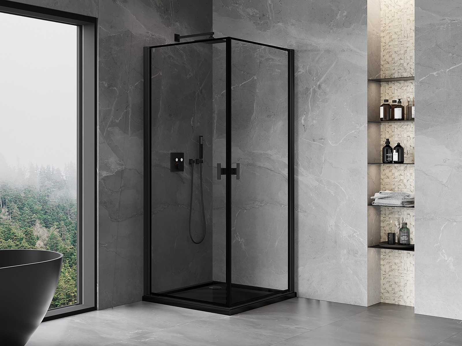 Mexen Rio kvadratinė dušo kabina 90 x 90 cm, skaidri, juoda - 860-090-090-70-00