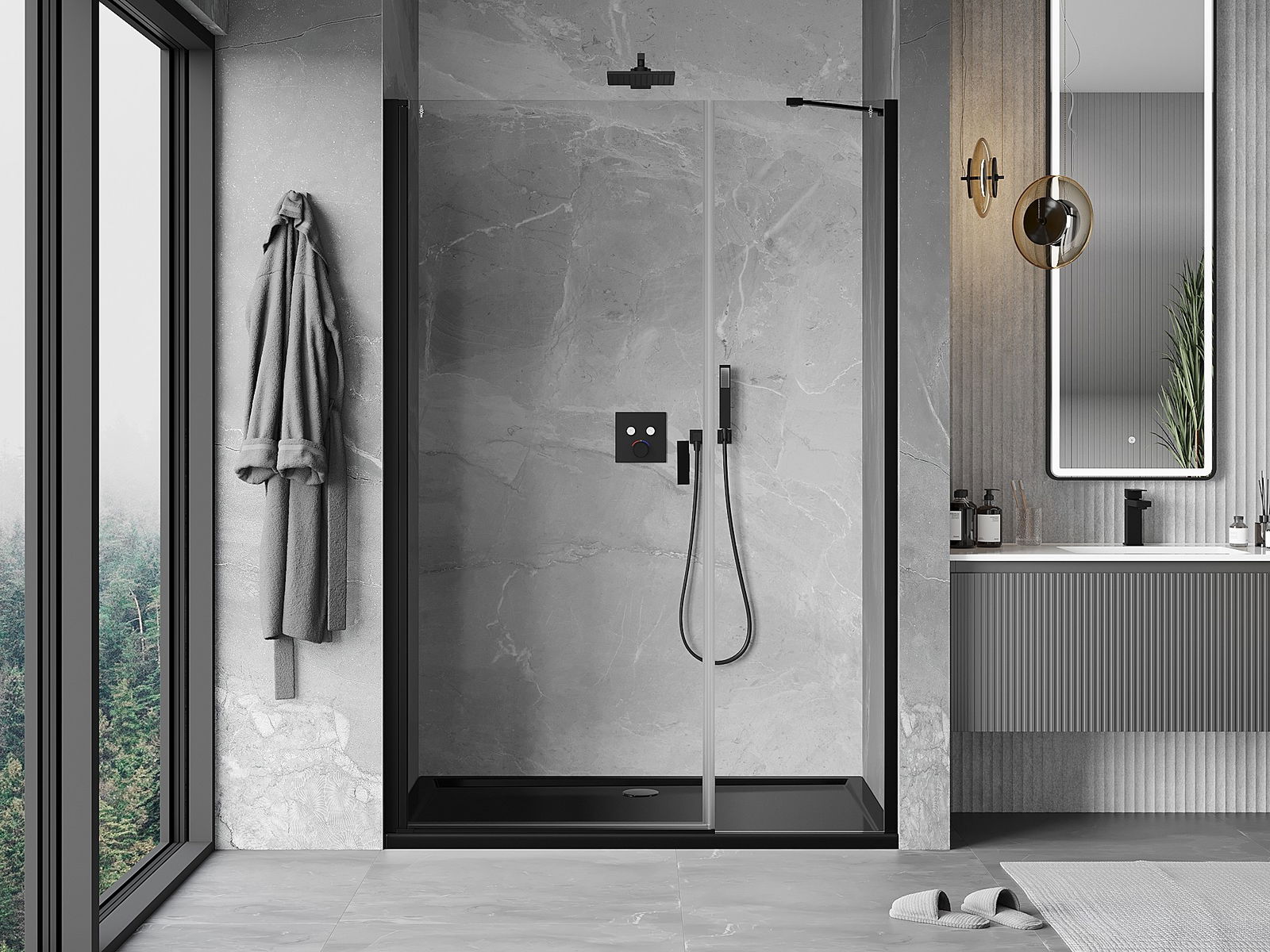 Mexen Mist-B atidaromas dušo durys 120 cm, permatomos, juodos - 8A2-120-001-70-00