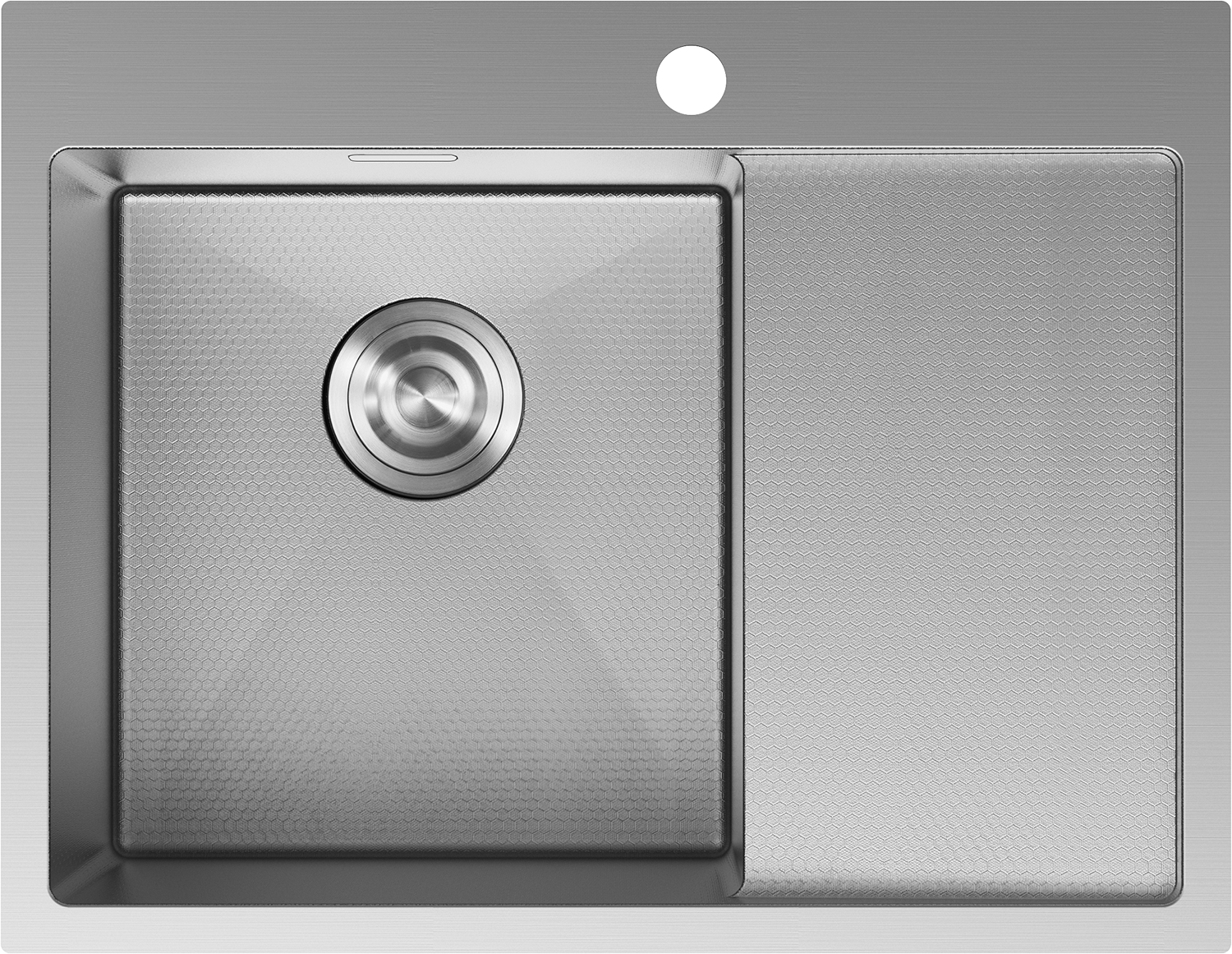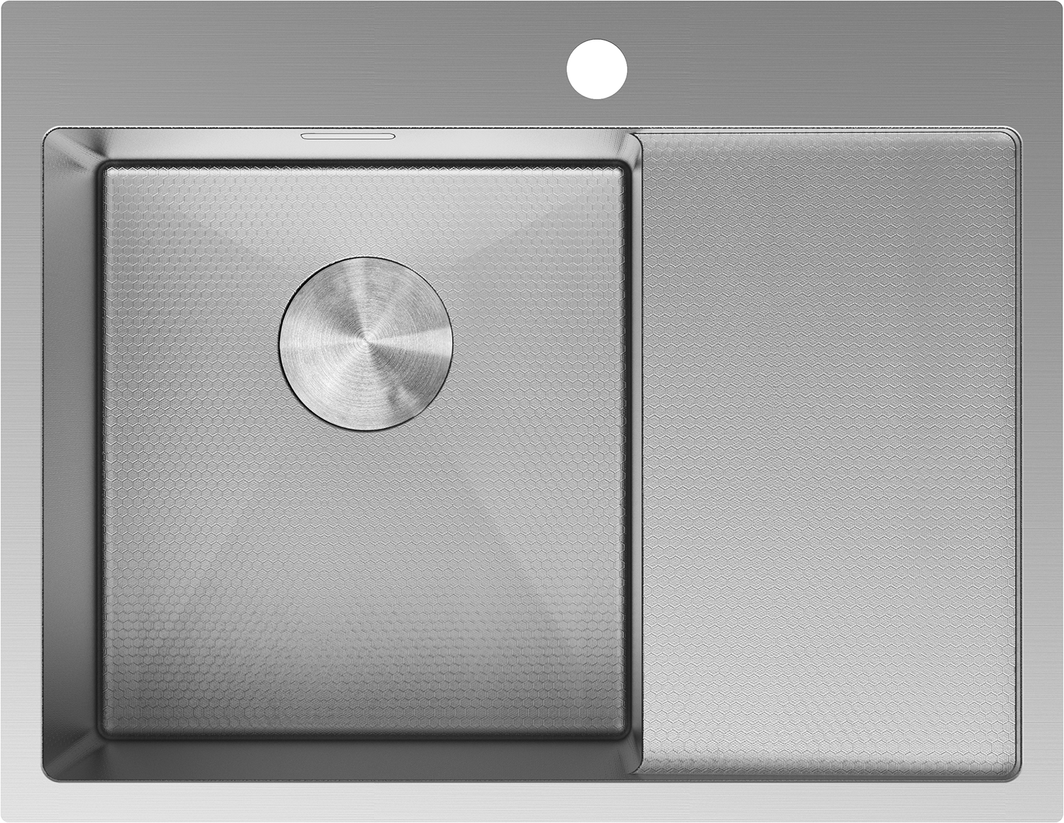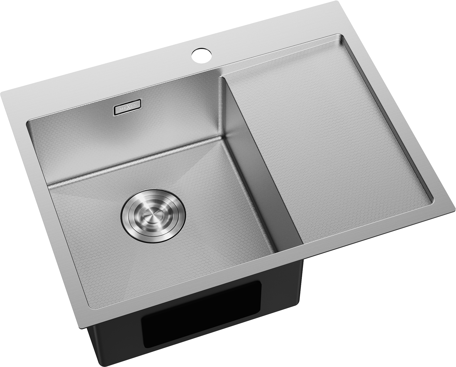 • Mexen Exar vienos plautuvės nerūdijančio plieno kriauklė su nutekėjimo zona, kairė 620 x 480 mm, nerūdijantis plienas HC