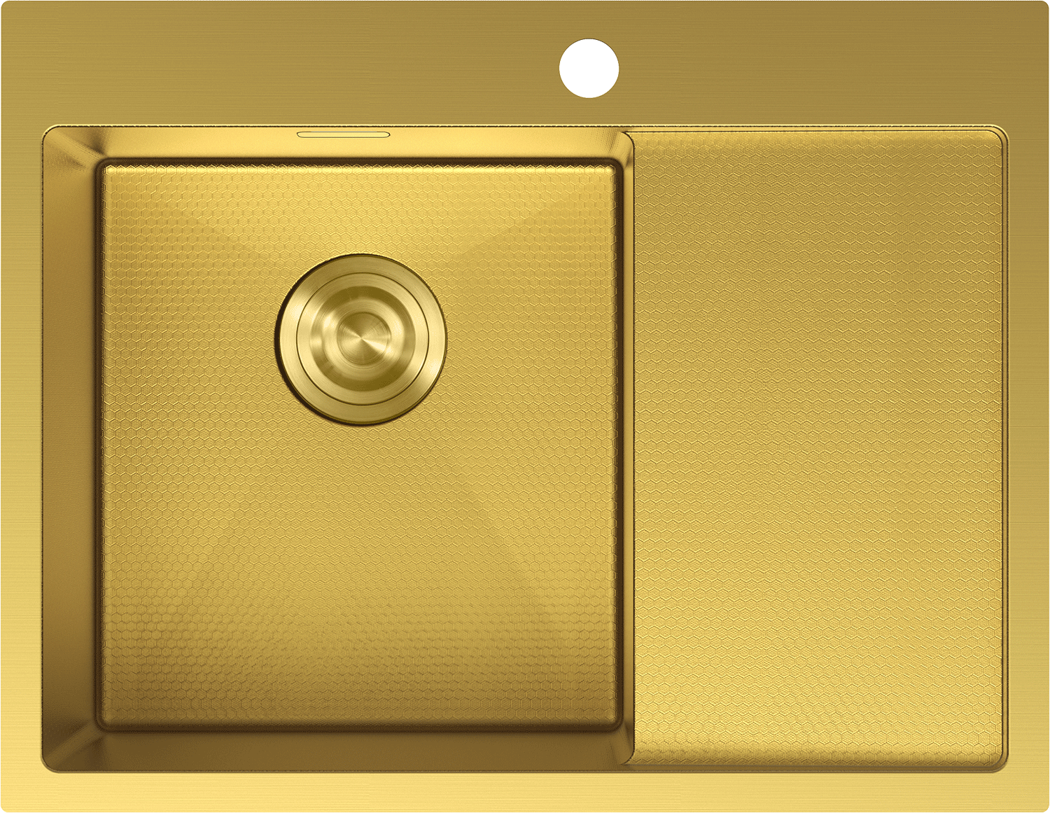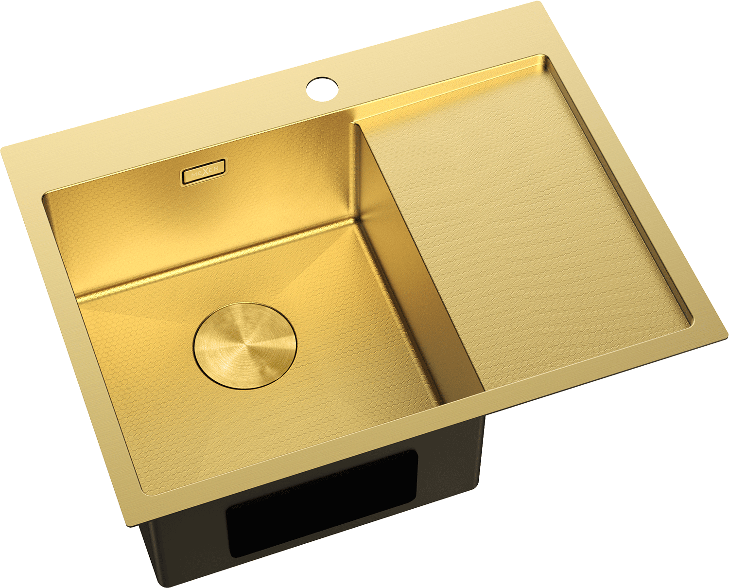 Mexen Exar plieninė vienos dalies kriauklė su nuvarvėjimu kairėje 620 x 480 mm, auksinė HC - 6431621005L-55HC