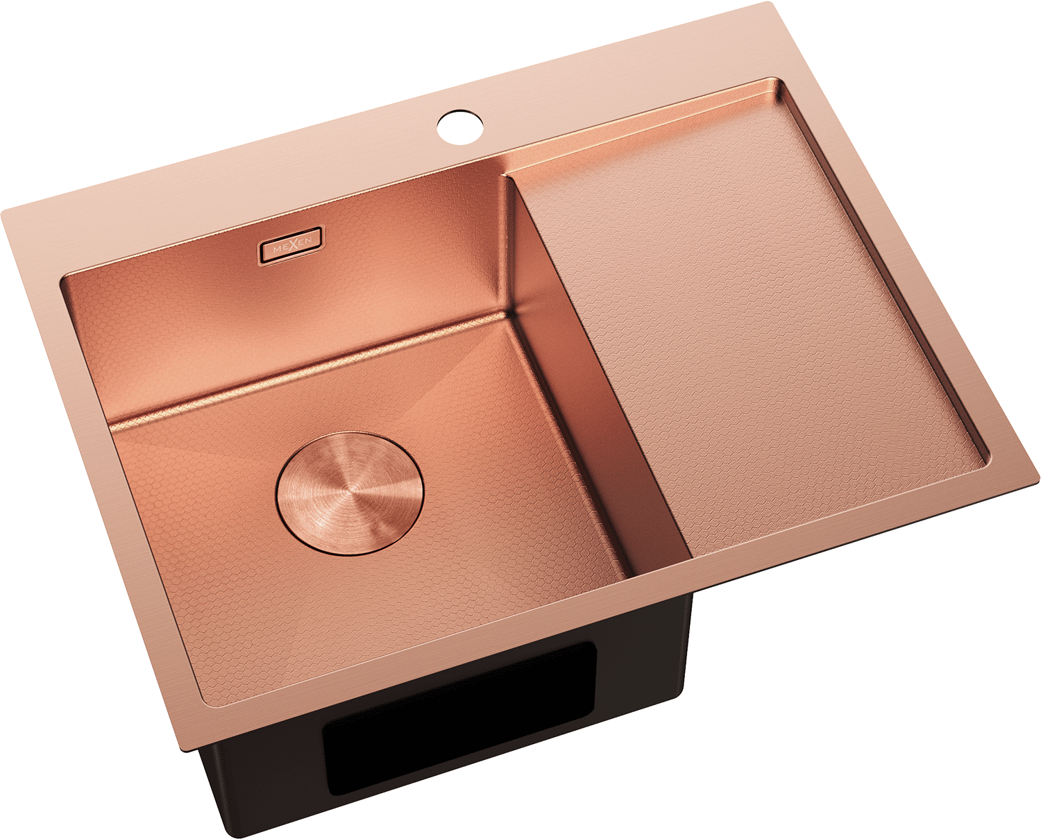 Mexen Exar plieninė vienos plautuvės kriauklė su džiovykla, kairinė 620 x 480 mm, varis HC - 6431621005L-65HC