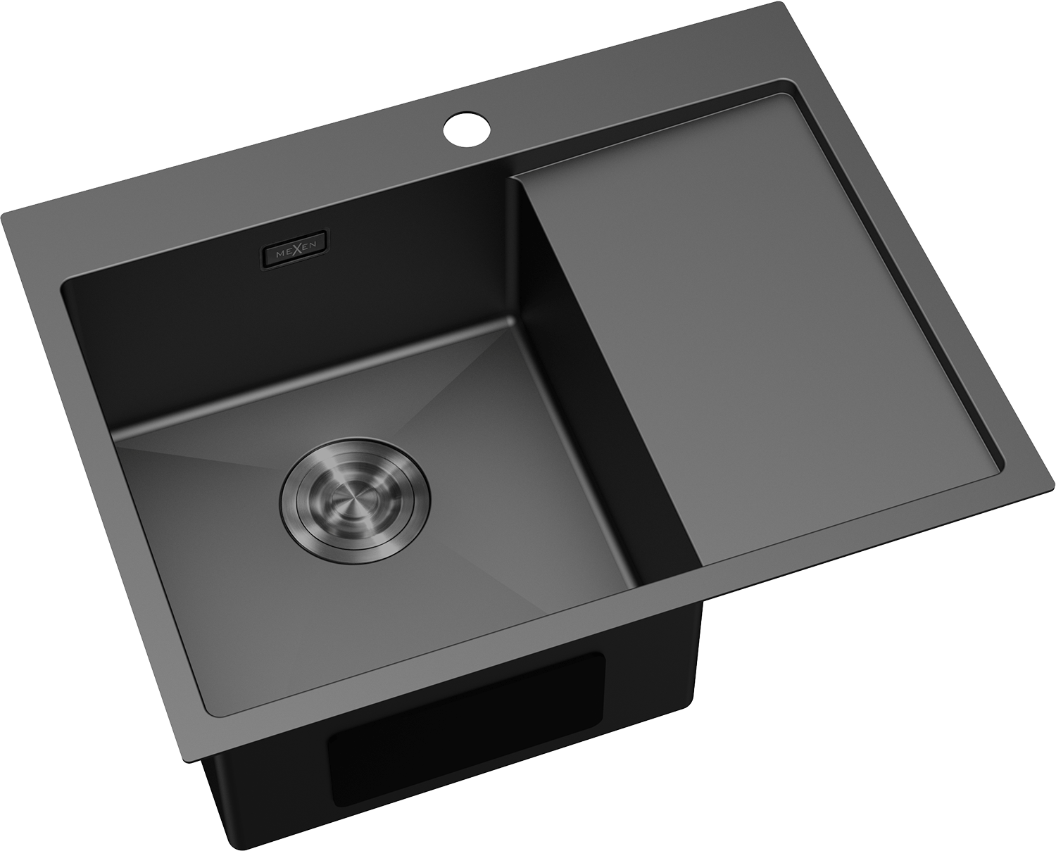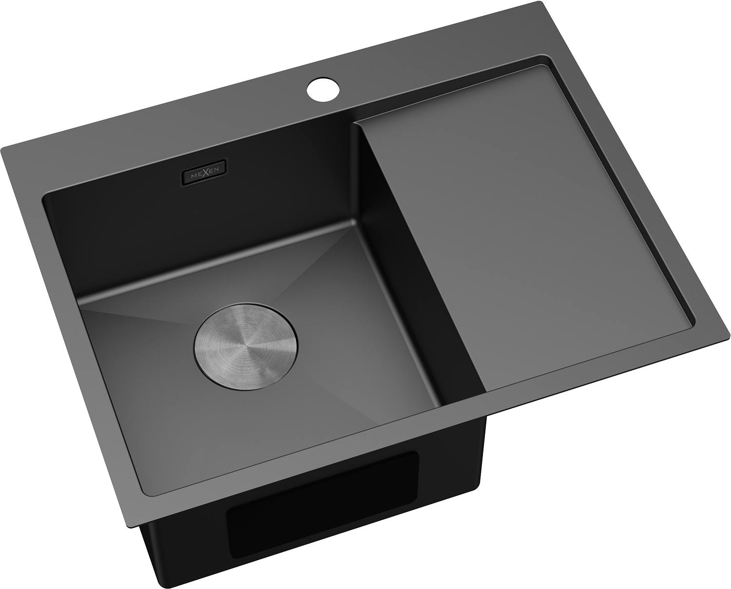 Mexen Exar plieninė virtuvės kriauklė su viena skyle ir nutekėjimu kairėje, 620 x 480 mm, juoda - 6431621005L-70