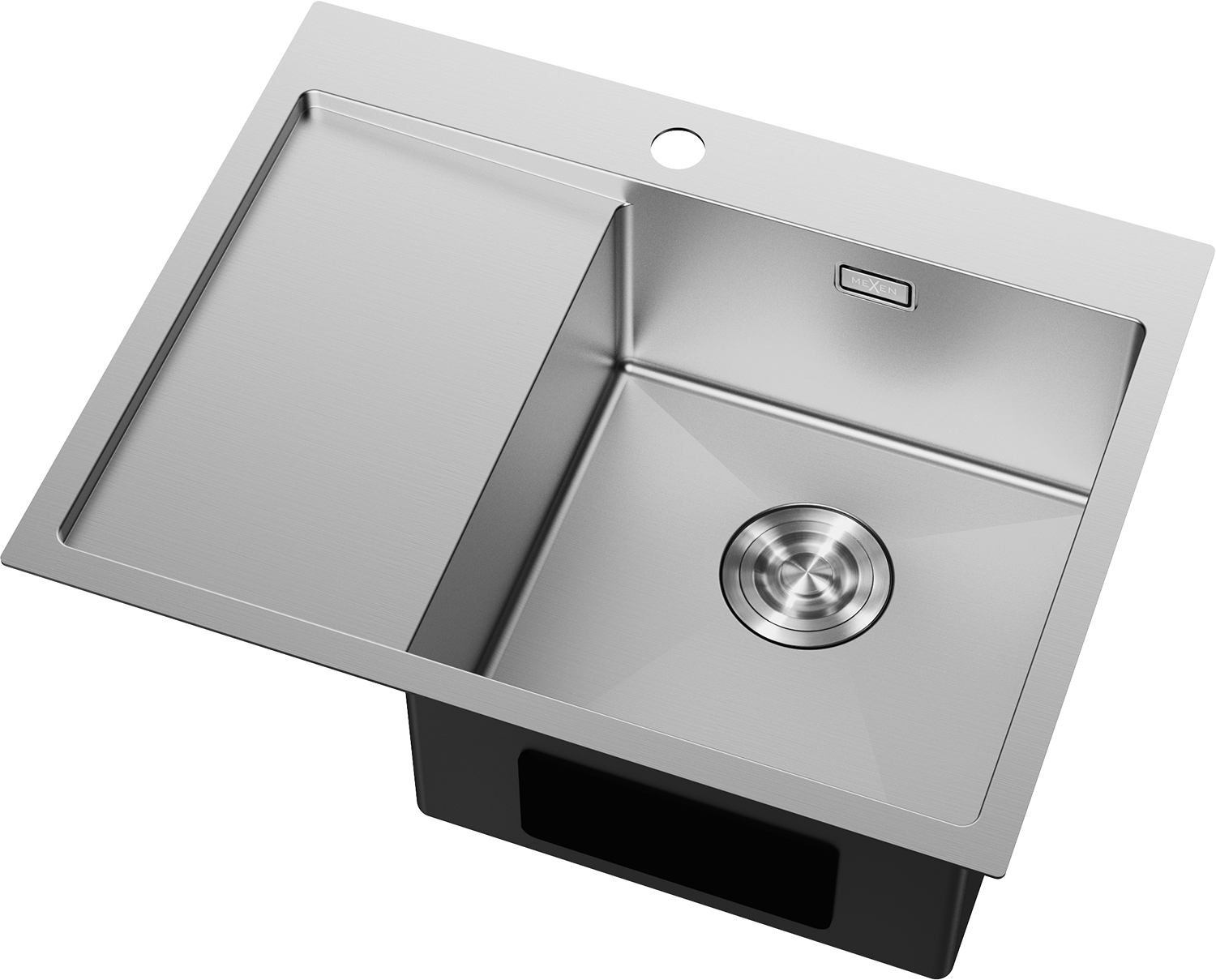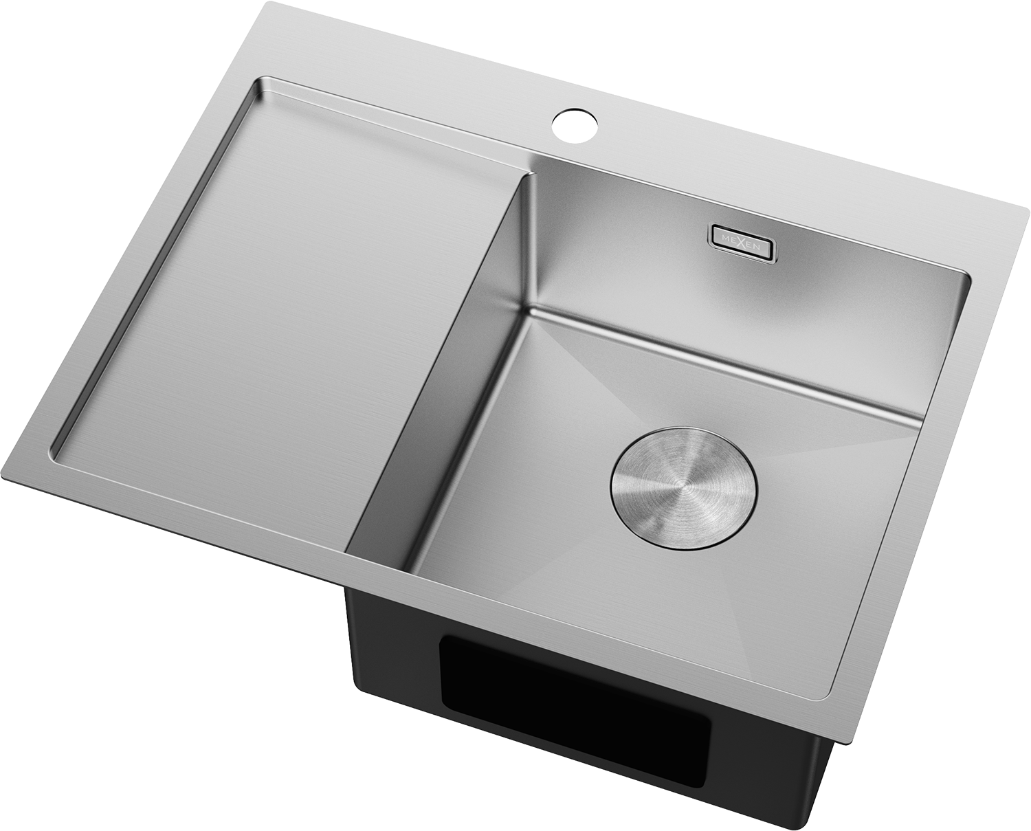 Mexen Exar plieninė kriauklė su viena plautuve ir nutekamuoju paviršiumi dešinėje, 620 x 480 mm, inox - 6432621005P-01