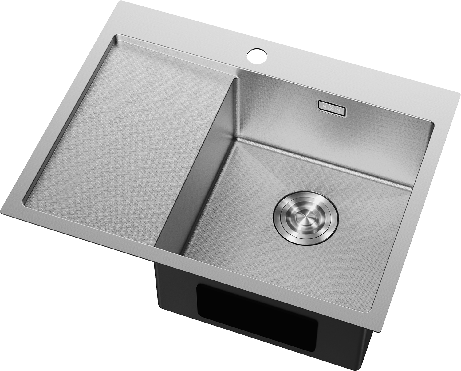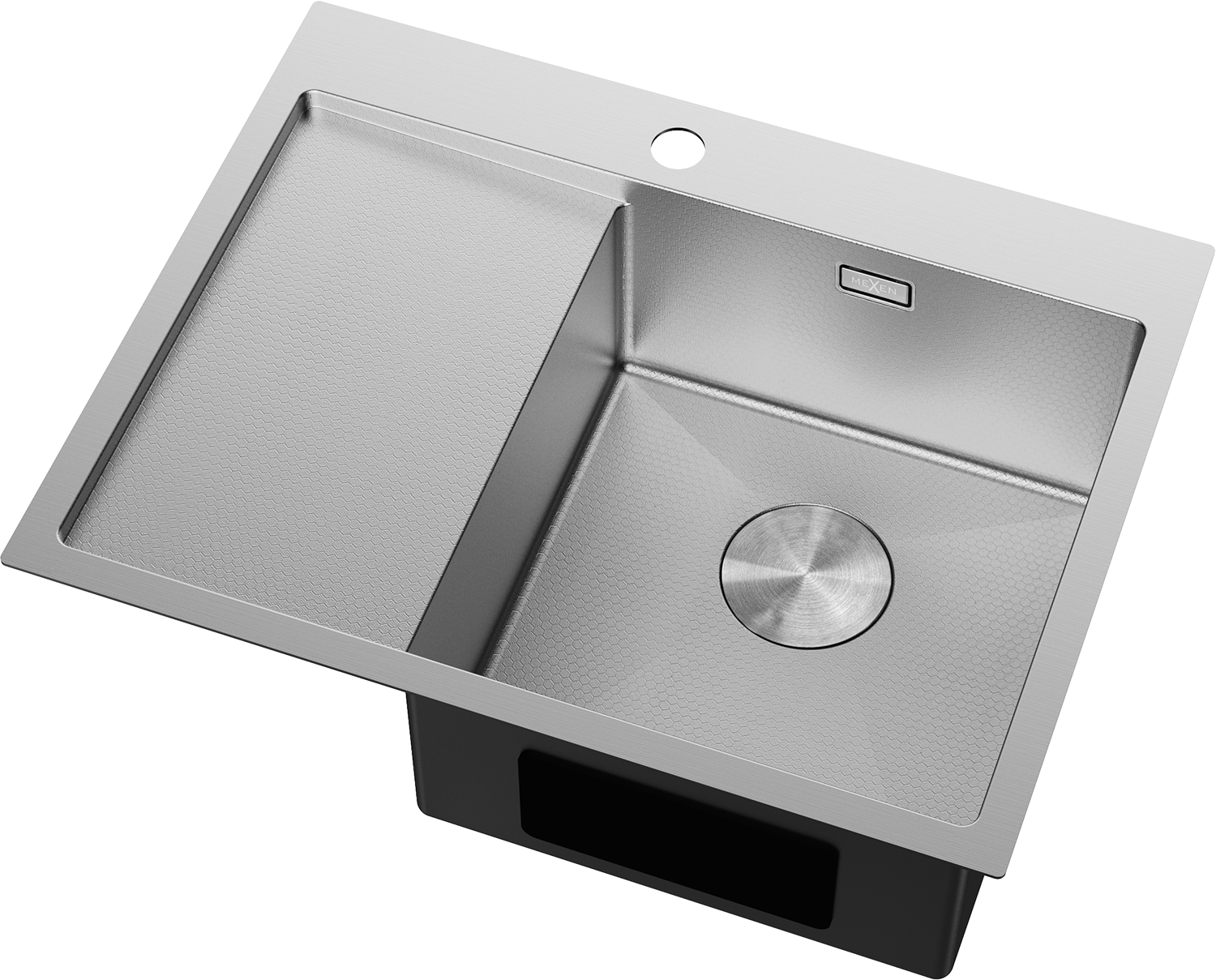 Mexen Exar plieninė plautuvė 1 skyriumi su nutekėjimu, dešinė 620 x 480 mm, inox HC - 6432621005P-01HC