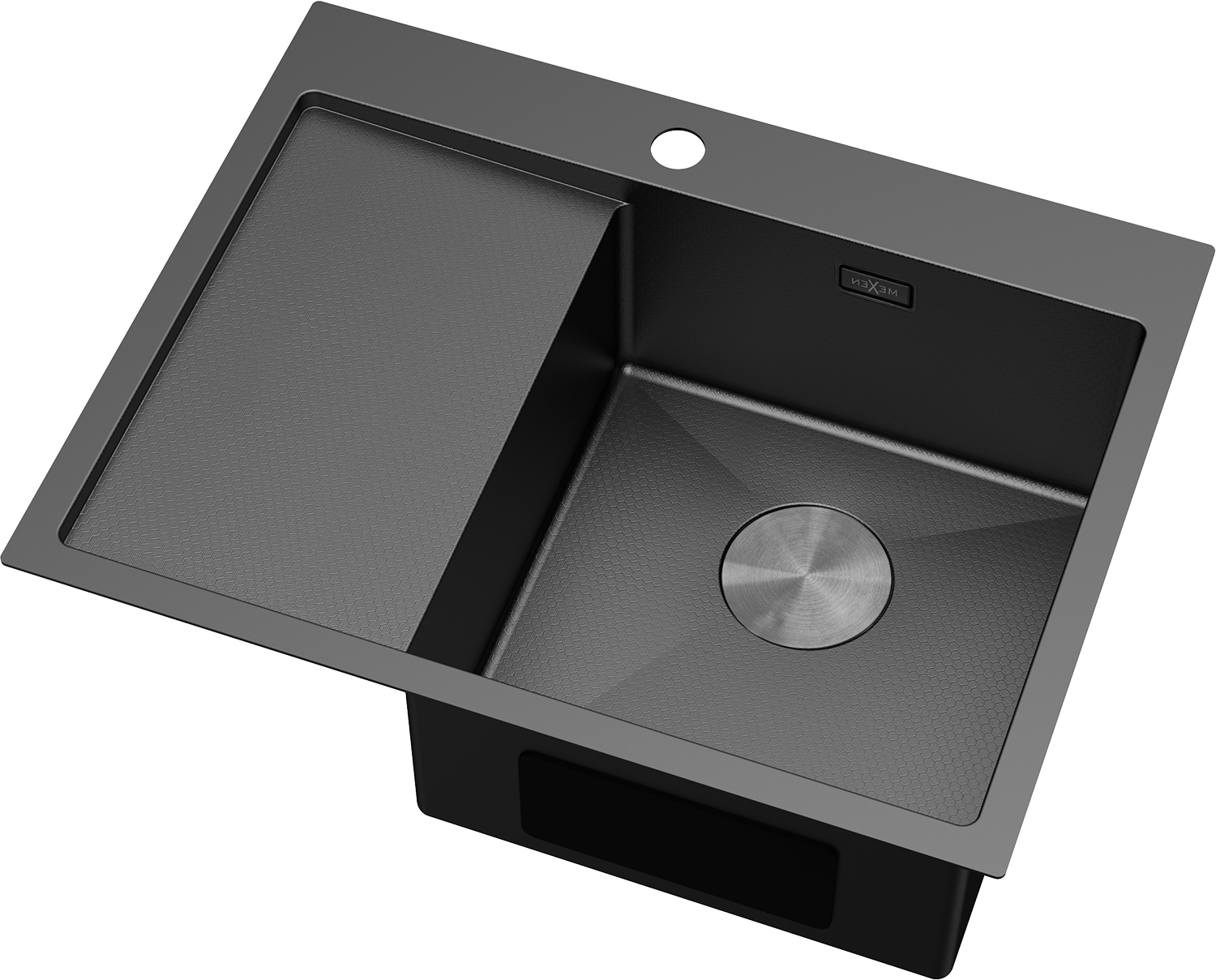 Mexen Exar plieninis vienos kameros plautuvė su dešiniuoju nusausinimo padėklu 620 x 480 mm, juoda HC -6432621005P-70HC