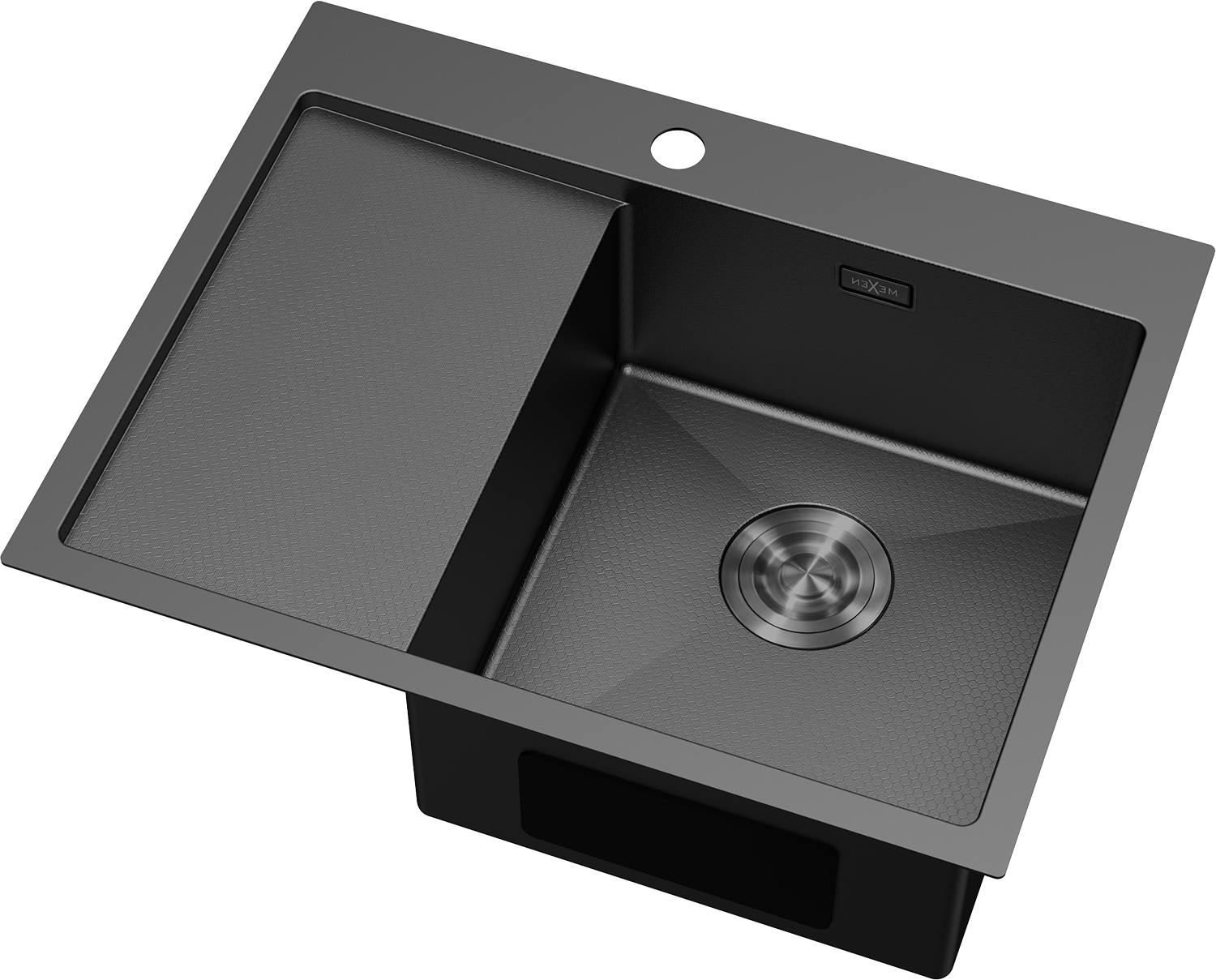 Mexen Exar plieno kriauklė su vienu skyriumi ir nutekėjimo padėklu, dešinė 620 x 480 mm, juoda HC - 6432621005P-70HC