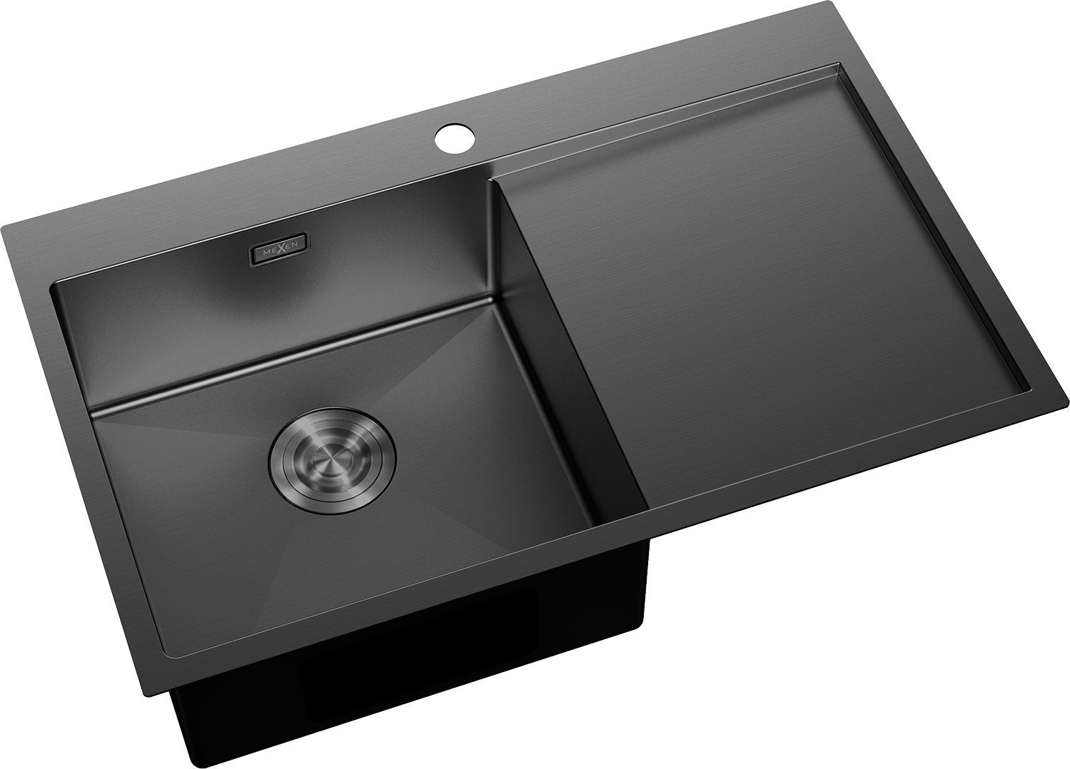 Mexen Exar plieninė 1-sekcinė kriauklė su kairiuoju nutekėjimu 780 x 480 mm, juoda - 6433781010L-70
