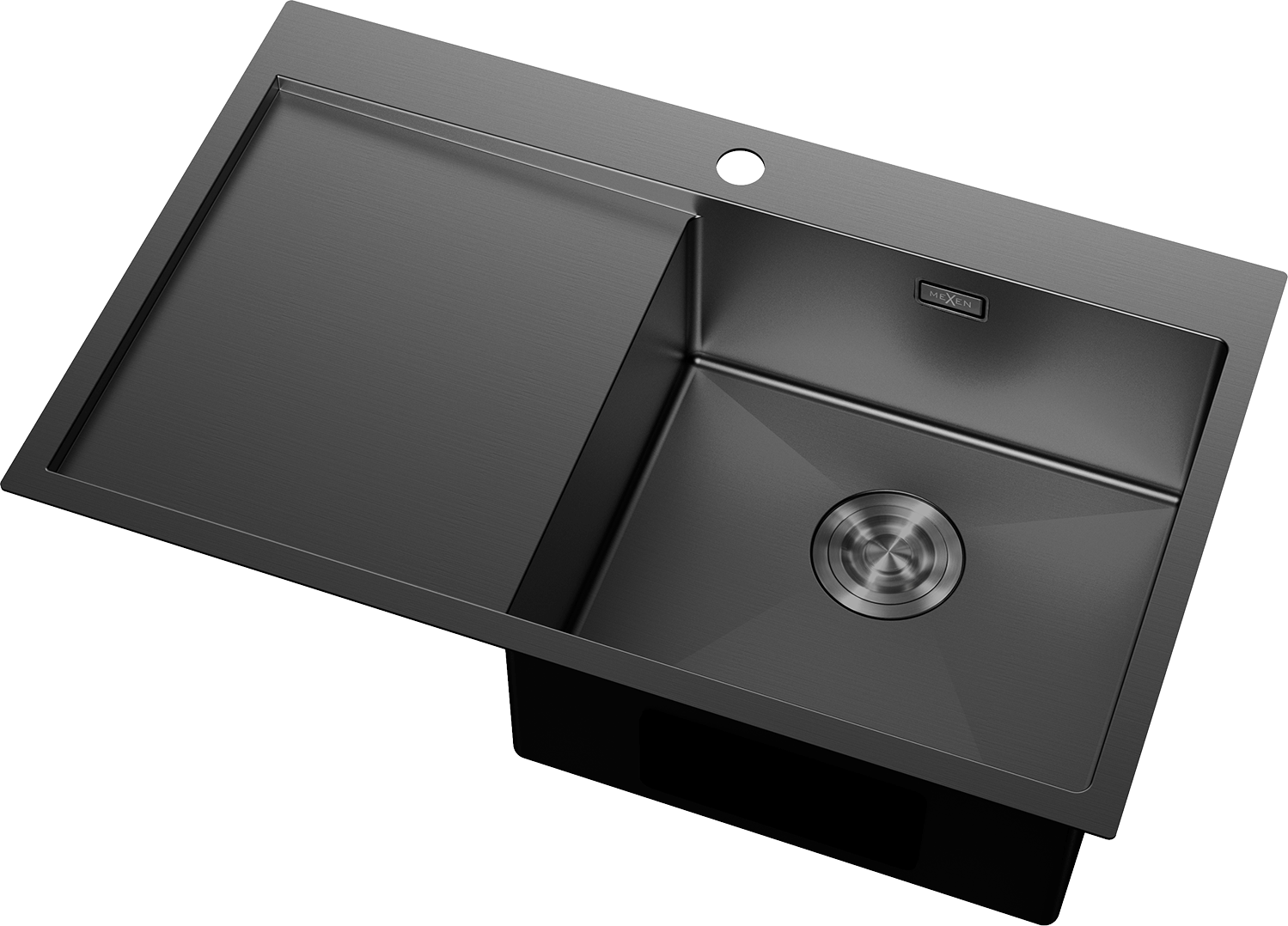 Mexen Exar juodas plieninis kriauklė su nutekėjimu, dešinė 780 x 480 mm - 6434781010P-70