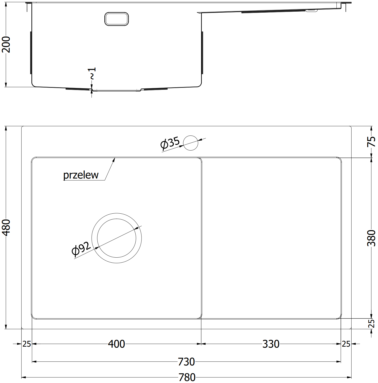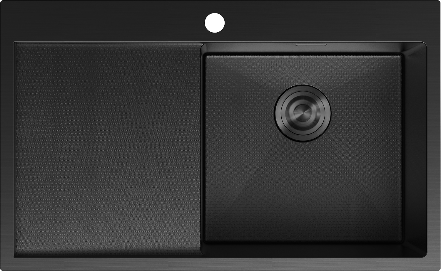 Mexen Exar plieninė vienos talpos kriauklė su nutekamuoju kraštu, dešinė, 780 x 480 mm, juoda HC - 6434781010P-70HC