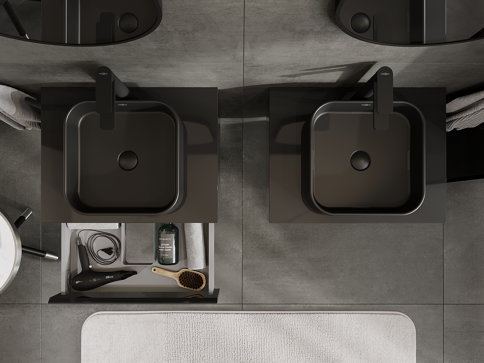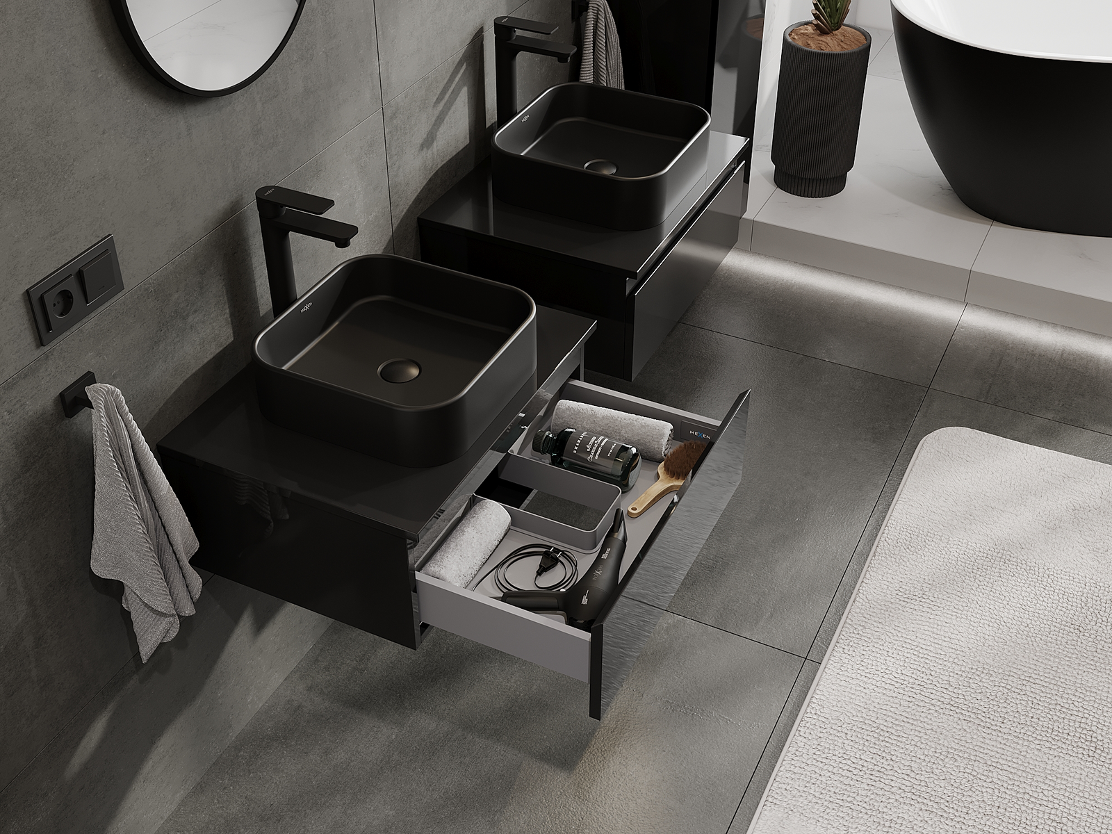 Mexen Orio vonios spintelė po praustuvu 60 cm, 1 stalčius, juodas blizgus - 91A10-06023-1-BF70