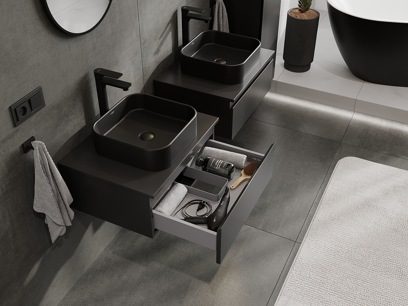 Mexen Orio vonios spintelė po praustuvu 60 cm, 1 stalčius, juoda matinė - 91A10-06023-1-BF71