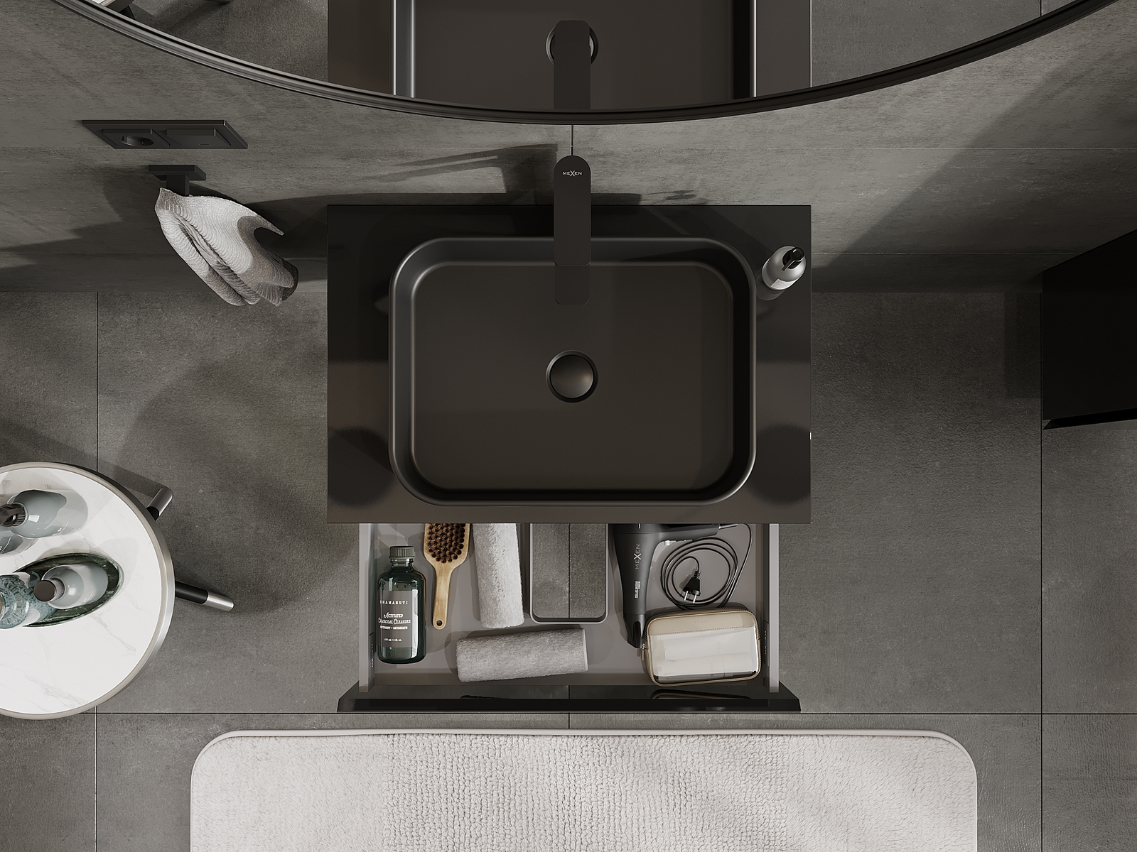 Mexen Orio vonios spintelė po praustuvu 70 cm, 1 stalčius, juoda blizgi - 91A10-07023-1-BF70