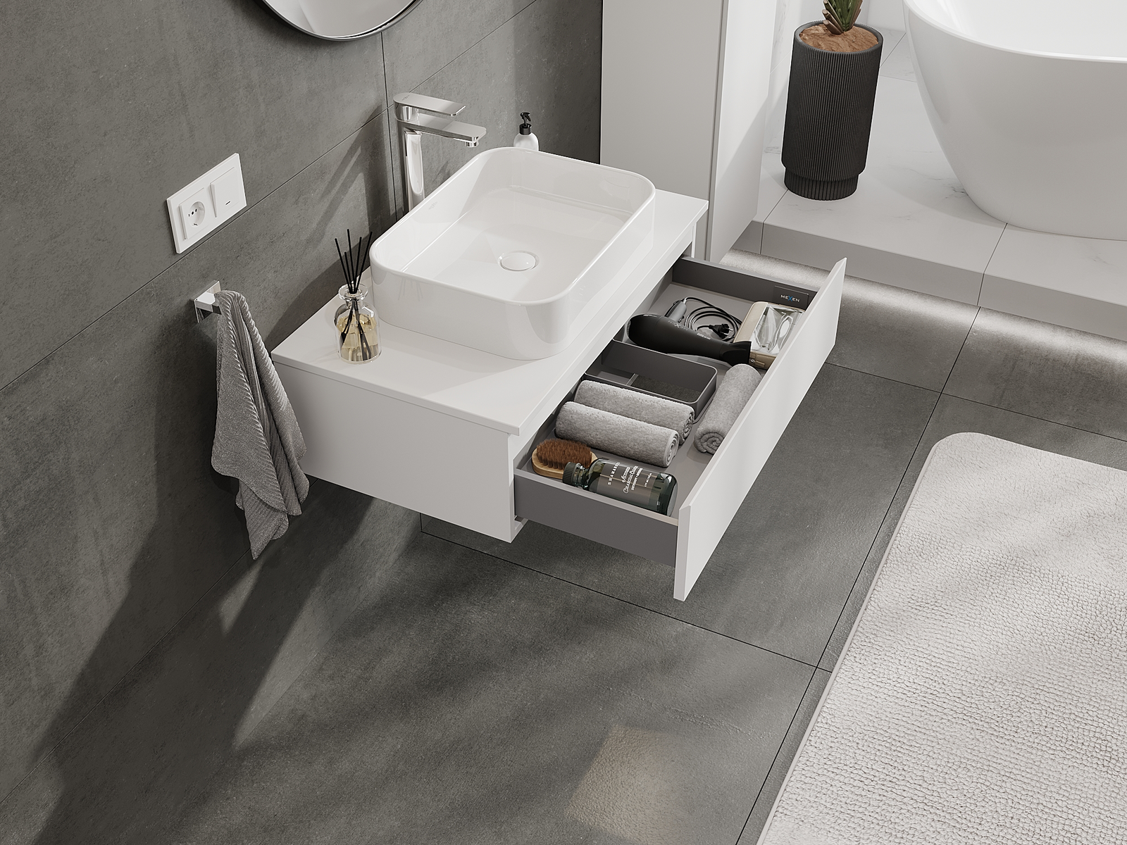 Dėl tvirtų medžiagų, preciziško atlikimo ir šiuolaikinių technologinių sprendimų, produktas užtikrina patogų naudojimą, atsparumą drėgmei ir temperatūros pokyčiams, taip pat elegantišką išvaizdą, kuri tinka įvairiems vonios kambario stiliams.