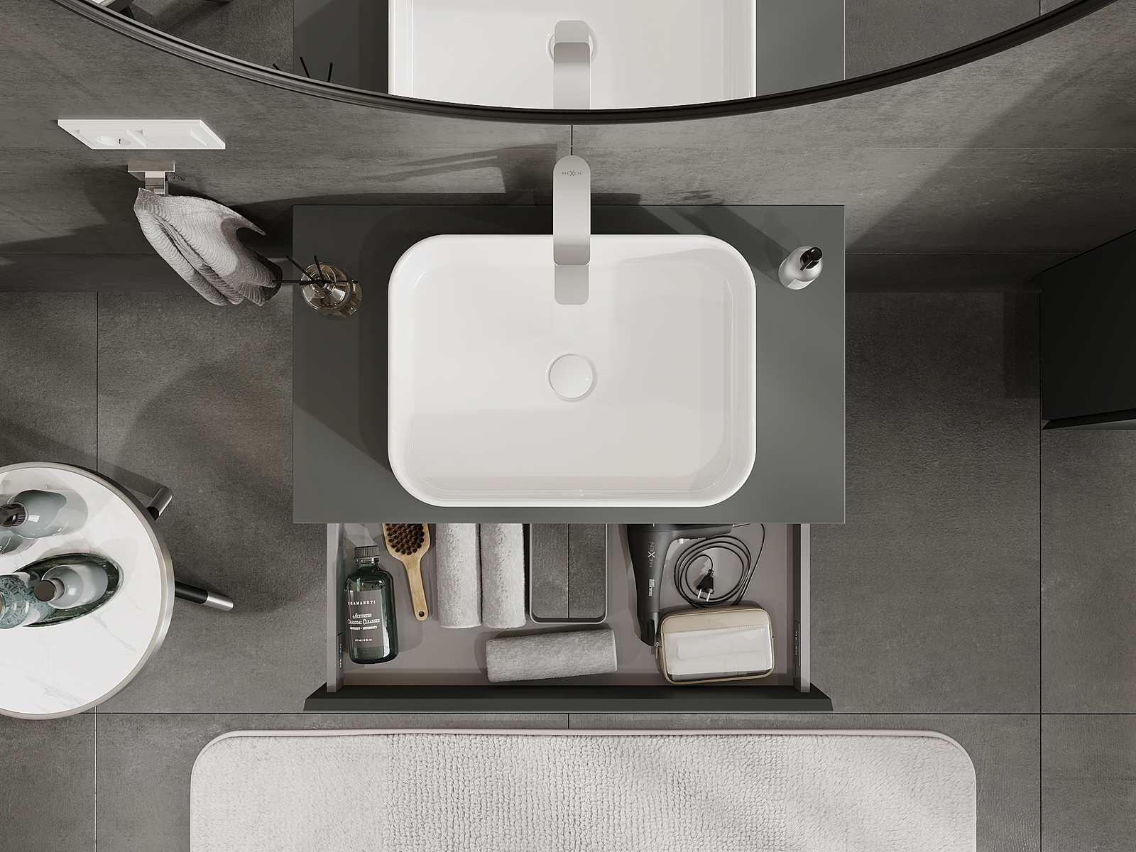 Mexen Orio vonios spintelė po praustuvu 80 cm, 1 stalčius, matinė grafito spalva - 91A10-08023-1-BF66
