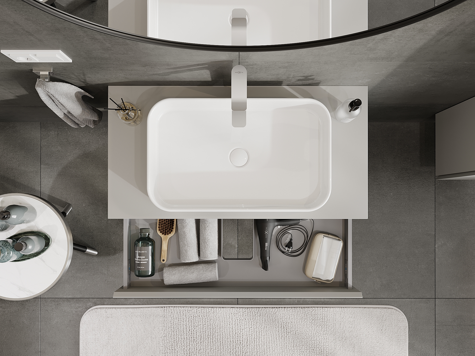 Mūsų moduliniai vonios baldai gali būti derinami tarpusavyje įvairiomis spalvų konfigūracijomis, leidžiant visiškai pritaikyti pagal asmeninius poreikius. Galima pasirinkti tiek atskirų elementų išvaizdą, tiek funkcijas, kas leidžia baldus pritaikyti pagal savo stiliaus ir naudojimo preferencijas.