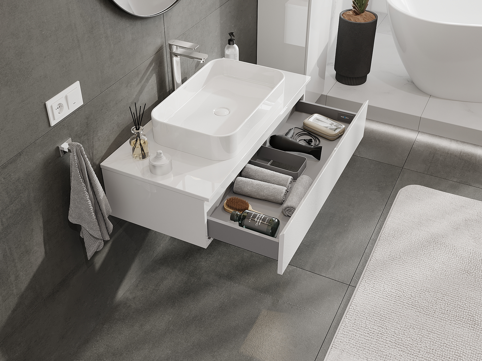 Dėl tvirtų medžiagų, preciziško atlikimo ir šiuolaikinių technologinių sprendimų, produktas užtikrina patogų naudojimą, atsparumą drėgmei ir temperatūros pokyčiams, taip pat elegantišką išvaizdą, kuri tinka įvairiems vonios kambario stiliams.